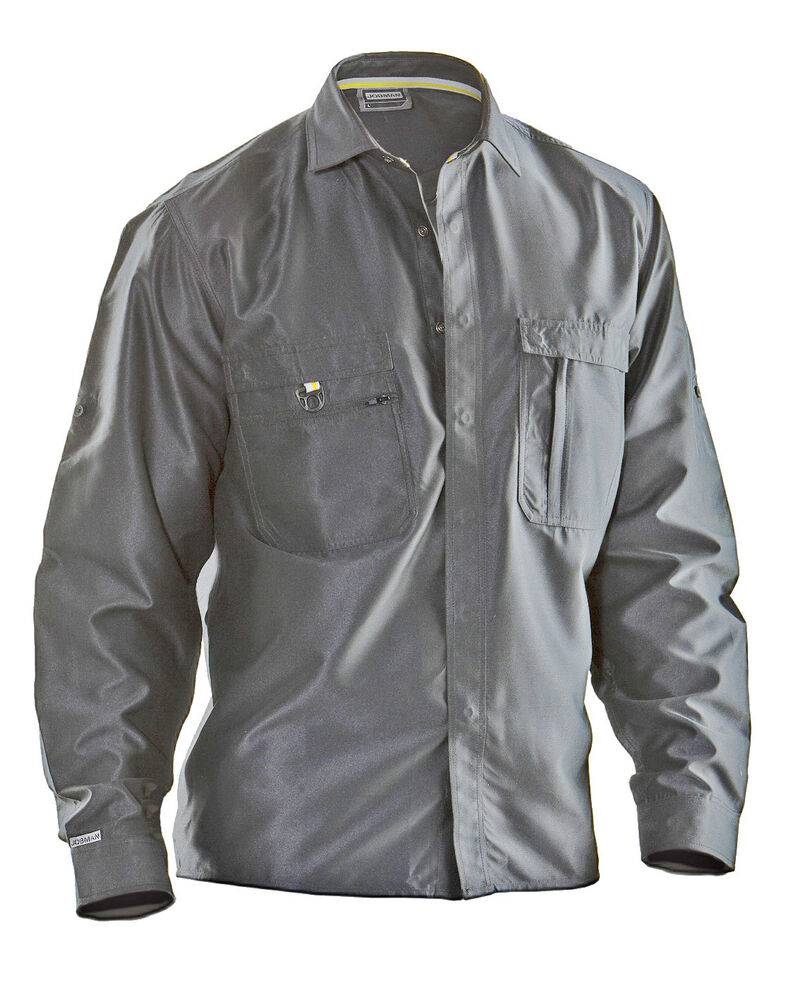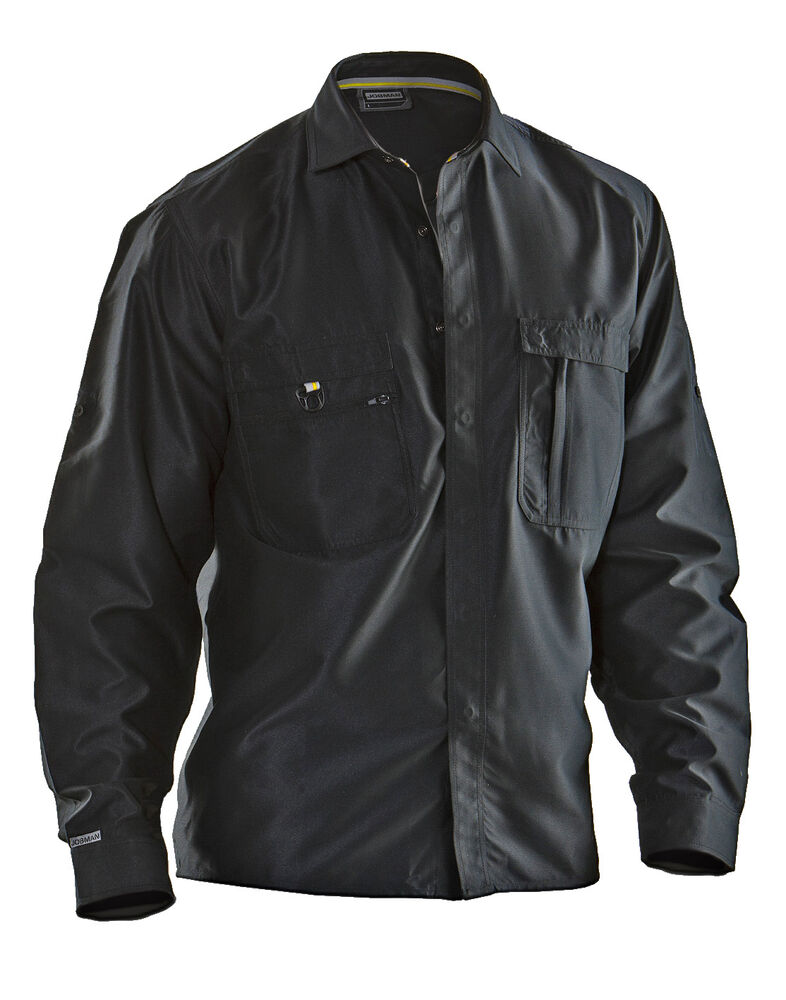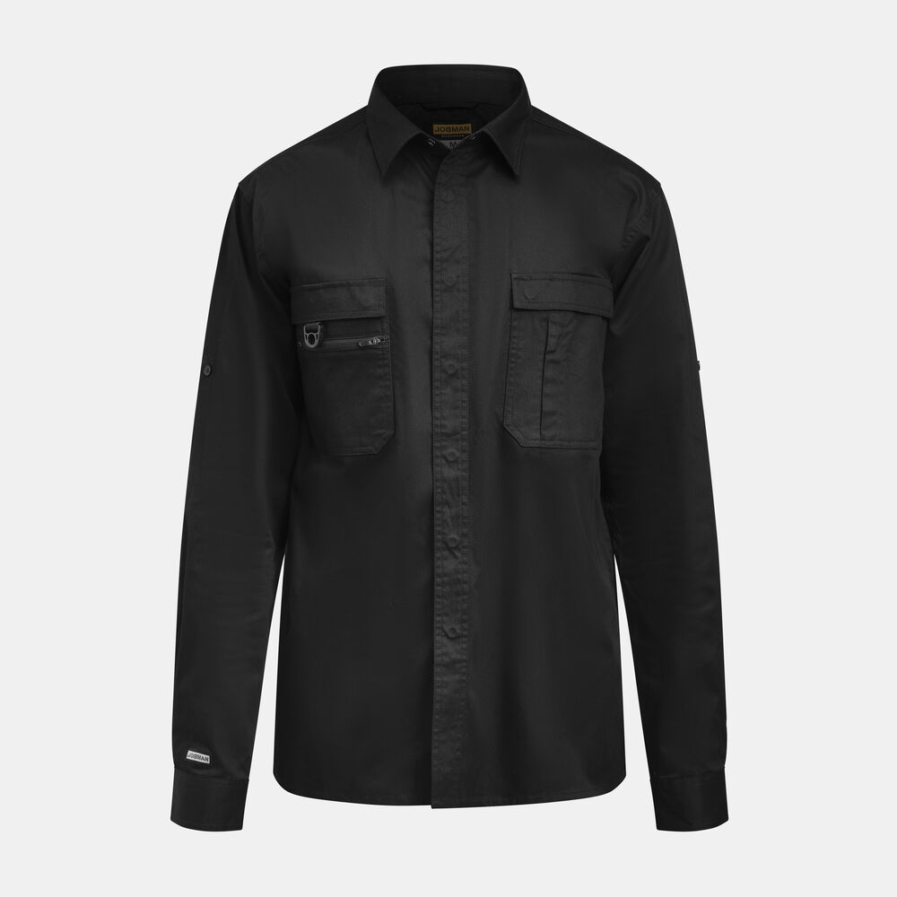 Skjorte i 100 % bomull. Langermet. Hempe med knapp i ermet. Skjulte knapper. Brystlommer med glidelås. D-ring på brystet.