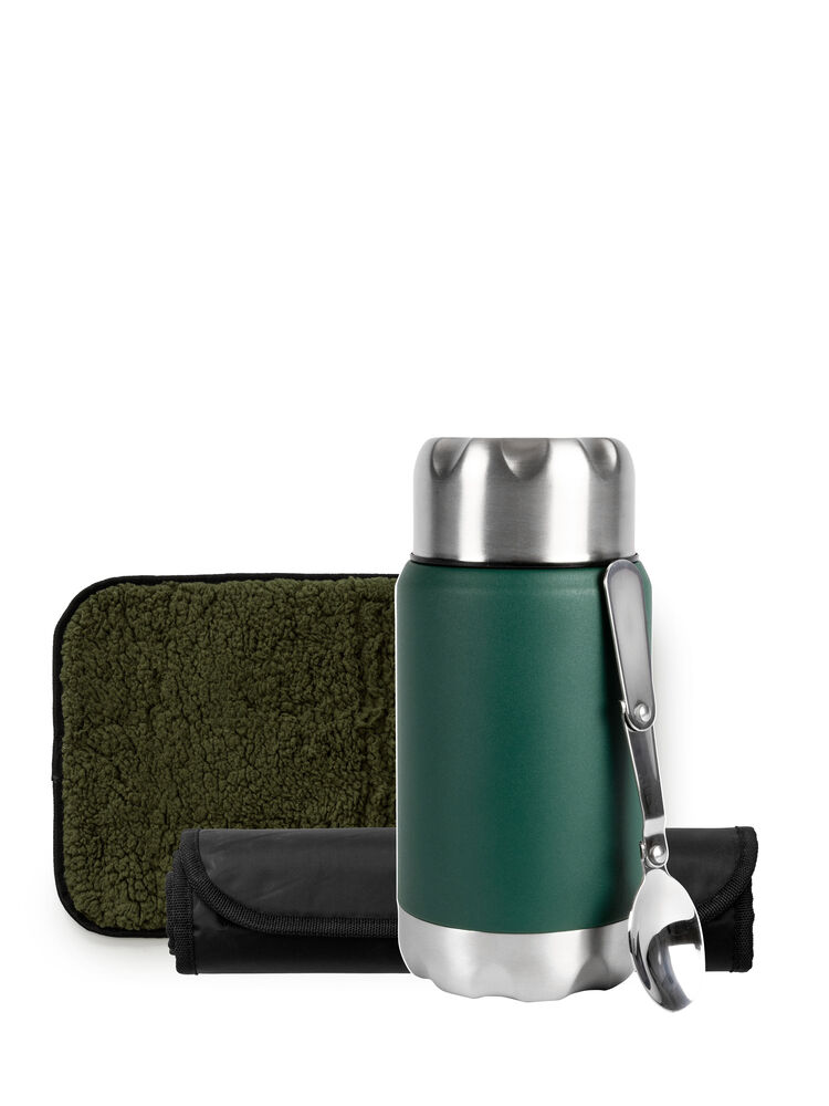 Sett bestående av to myke sitteunderlag med vannavstøtende underside, og en grønn mattermos som sikrer at maten holder seg kald i 24 timer eller varm i 12 timer. Ta med settet på skogsturer, soppsanking eller bruk det på piknik. Denne gaven er perfekt i sin enkelhet, noe som gjør den utmerket å ha i alle hjem. Leveres i Sagaforms flotte Perfect gift box, medium.