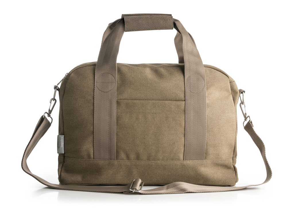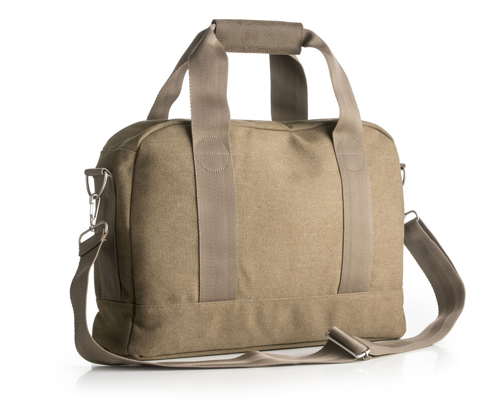 Flott PC-veske i steinvasket beige canvas. Med utvendige og innvendige oppbevaringslommer. Perfekt til for eksempel jobb eller studier. Skulderrem medfølger. Holder 13 liter.