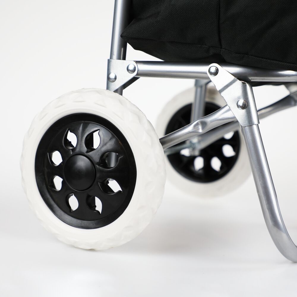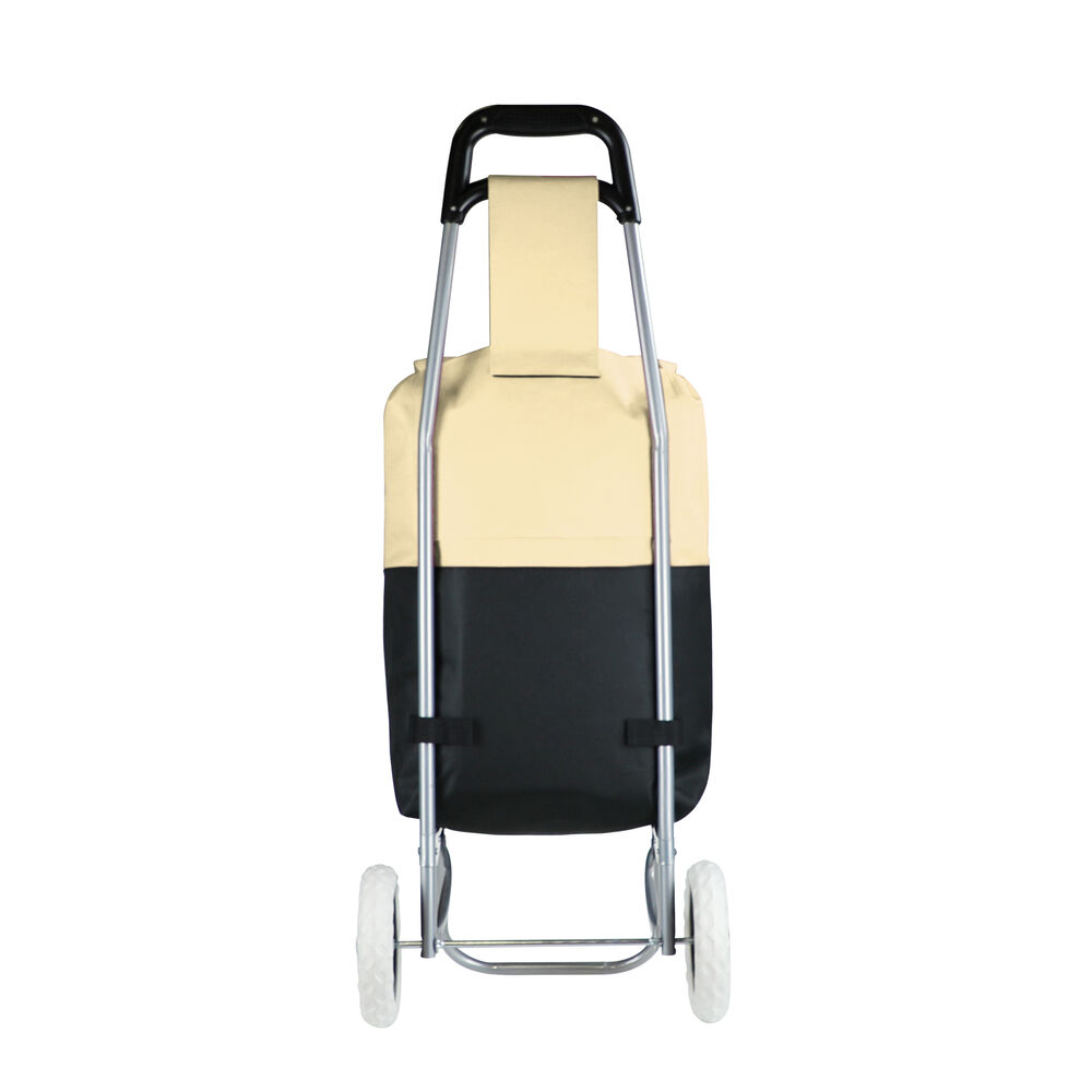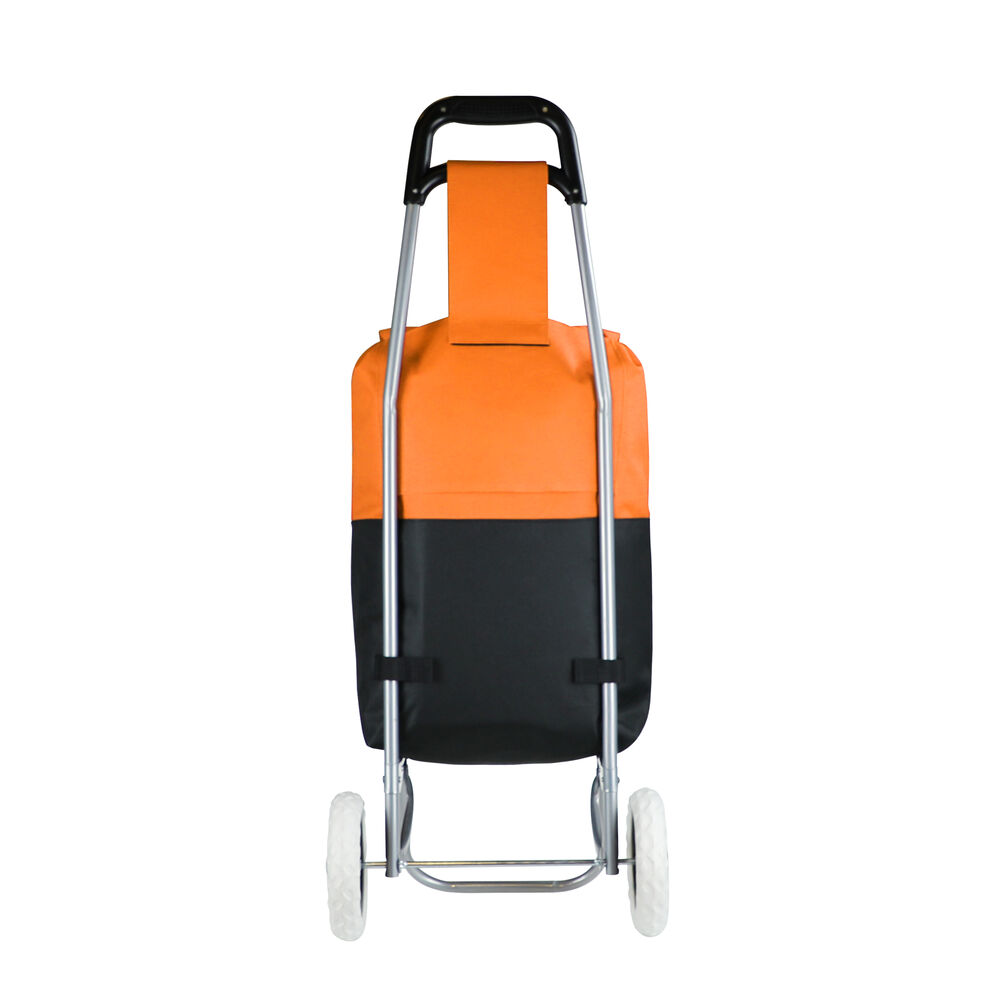 Shoppingtralle med et stort hovedrom, lomme med glidelås og avtagbare hjul.