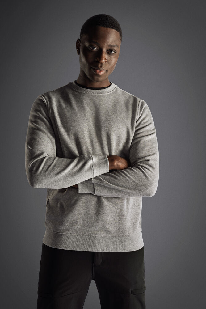 Sweatshirt med rund hals. 2×2 ribb i ermer og nederkant.