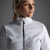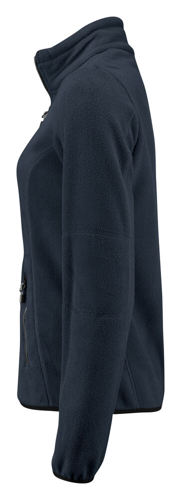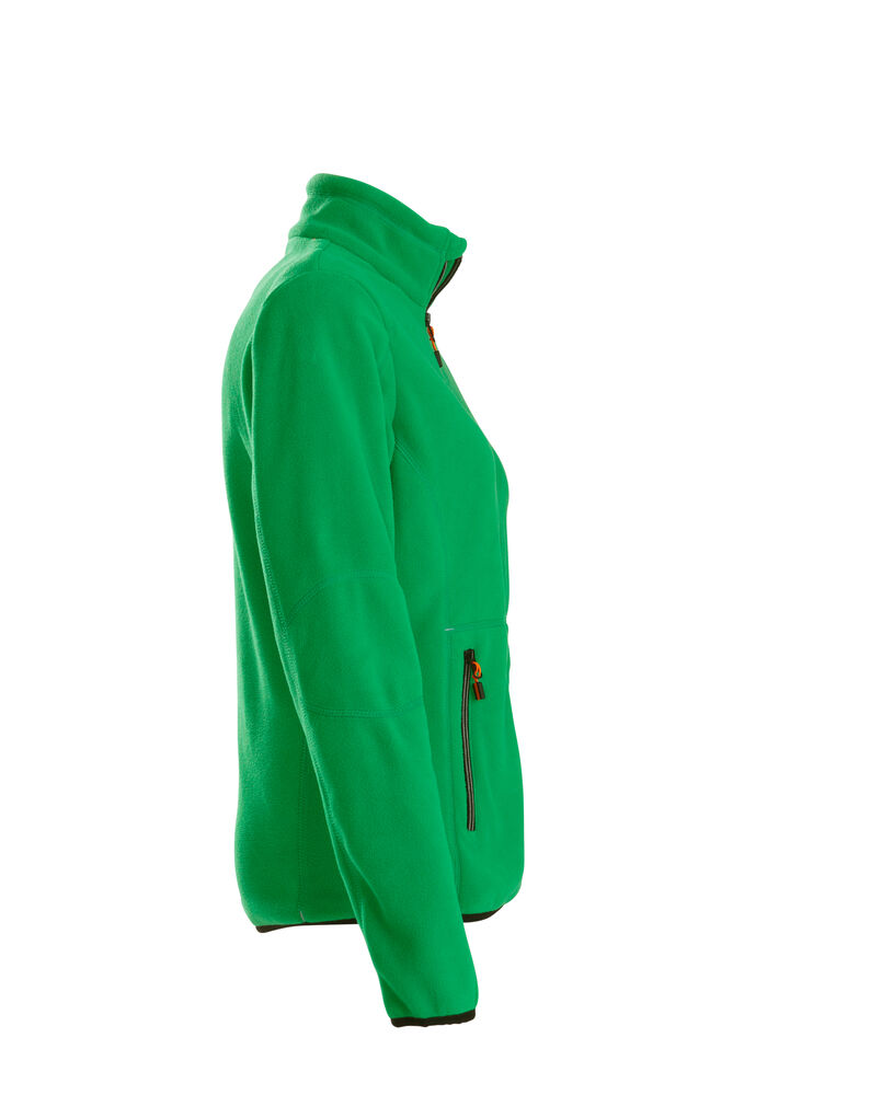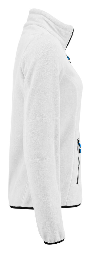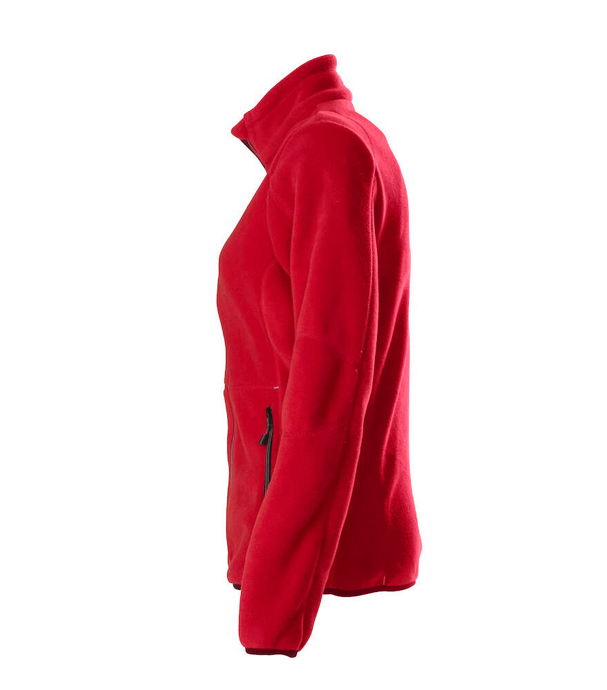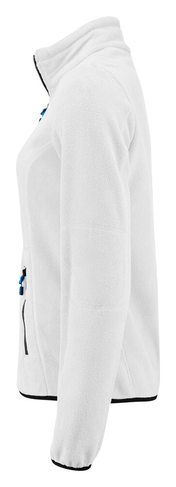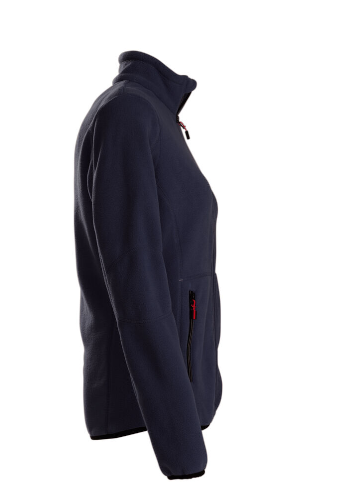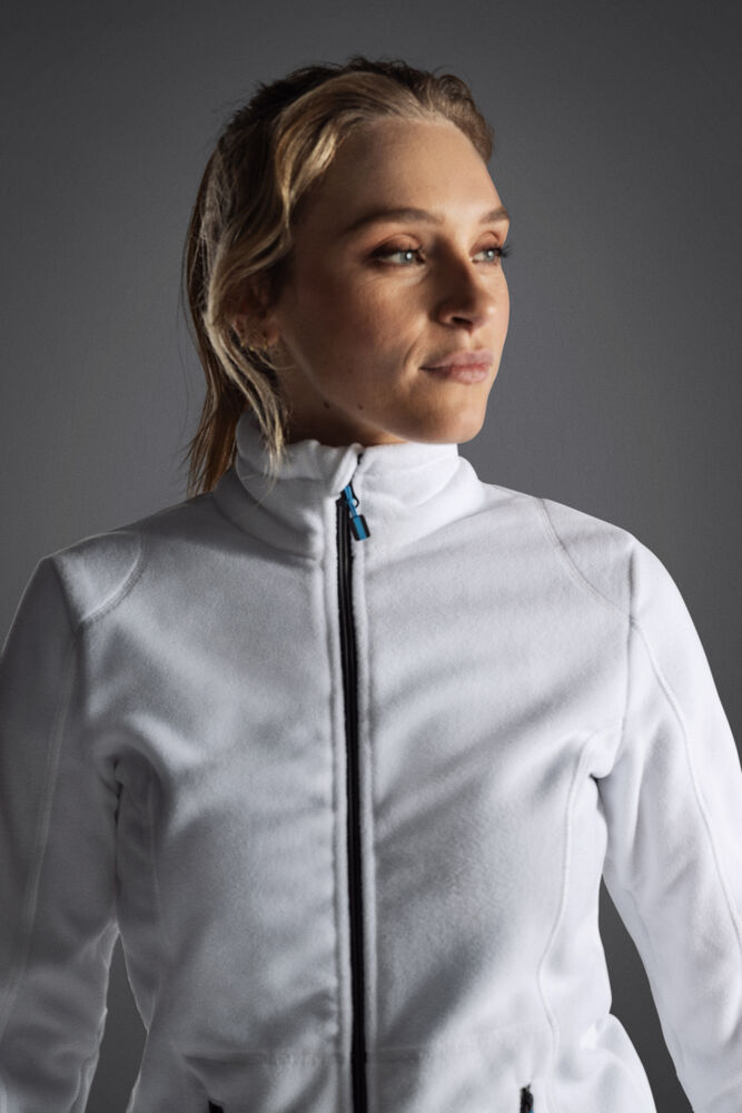 Fleecejakke til dame med tofarget glidelås i front og i lommer. Dekorert med flatlocksømmer. Mulighet for å kjøpe separate zip-pullere i ulike farger til glidelåsen for å matche eventuelle logoer.