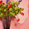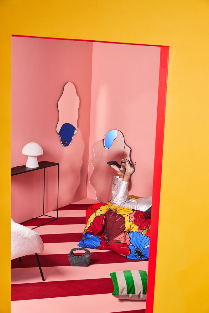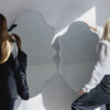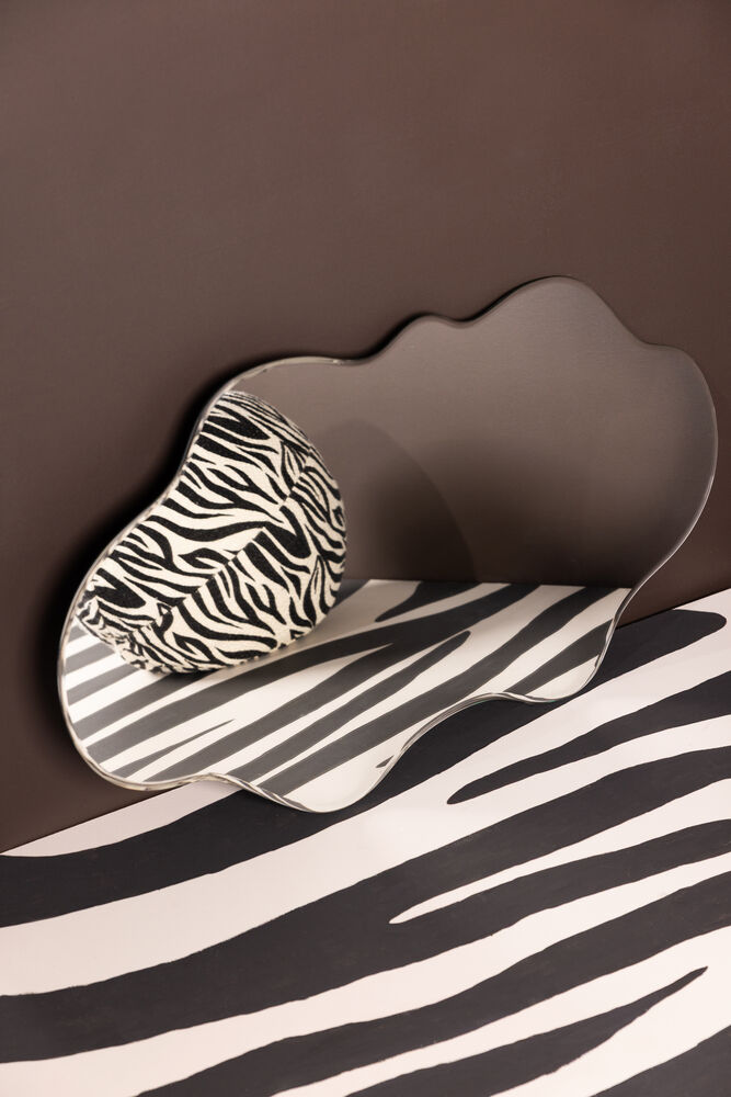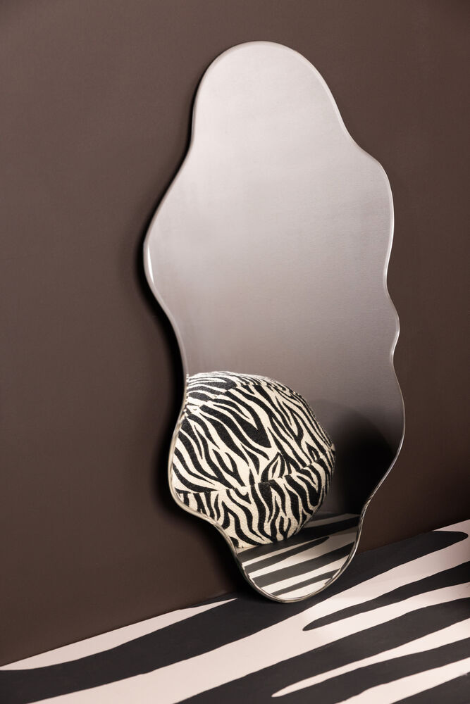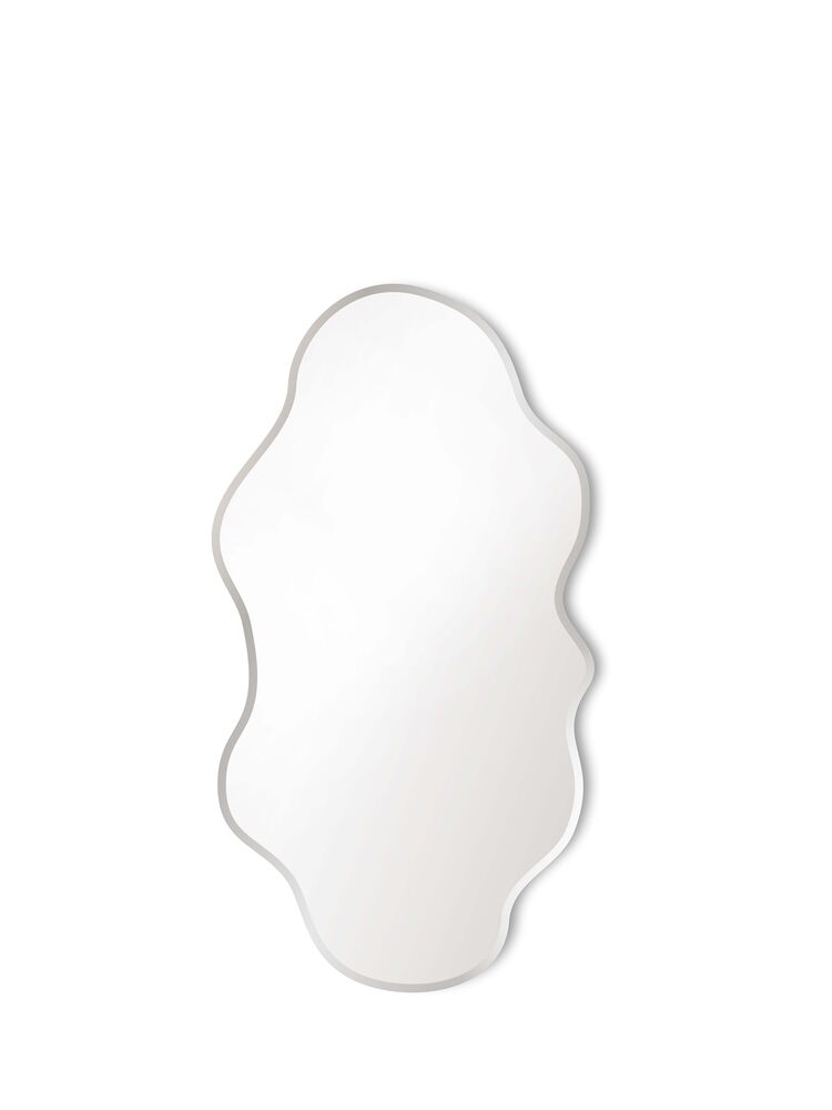 Et fantasifullt speil med organiske former som leker med betrakteren på en forførende måte. Like fin liggende som stående, alene som i par. Speilglass med fasede kanter. Finnes i to størrelser.