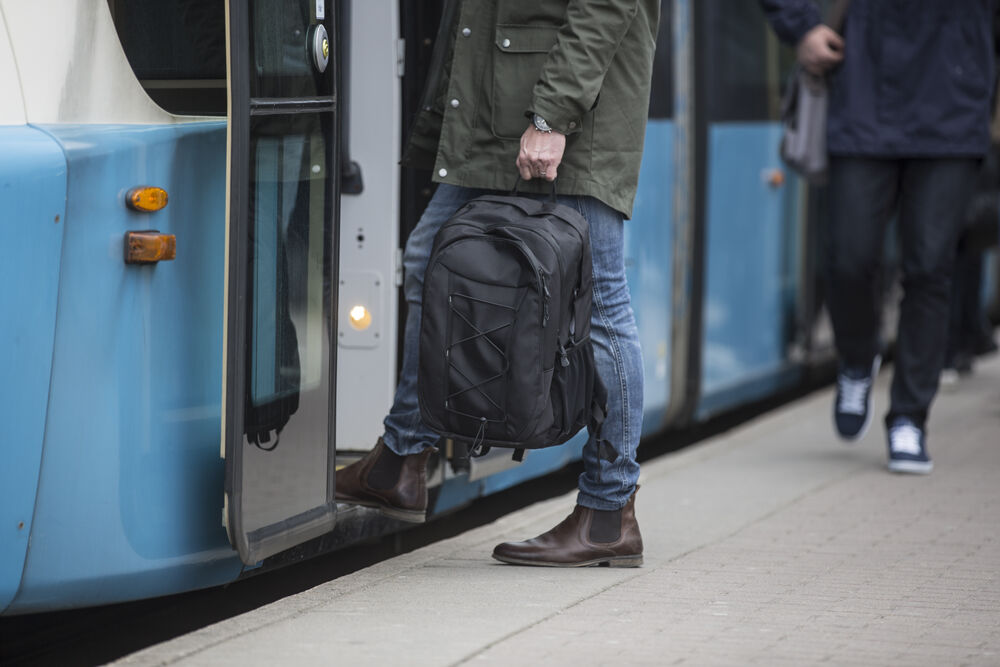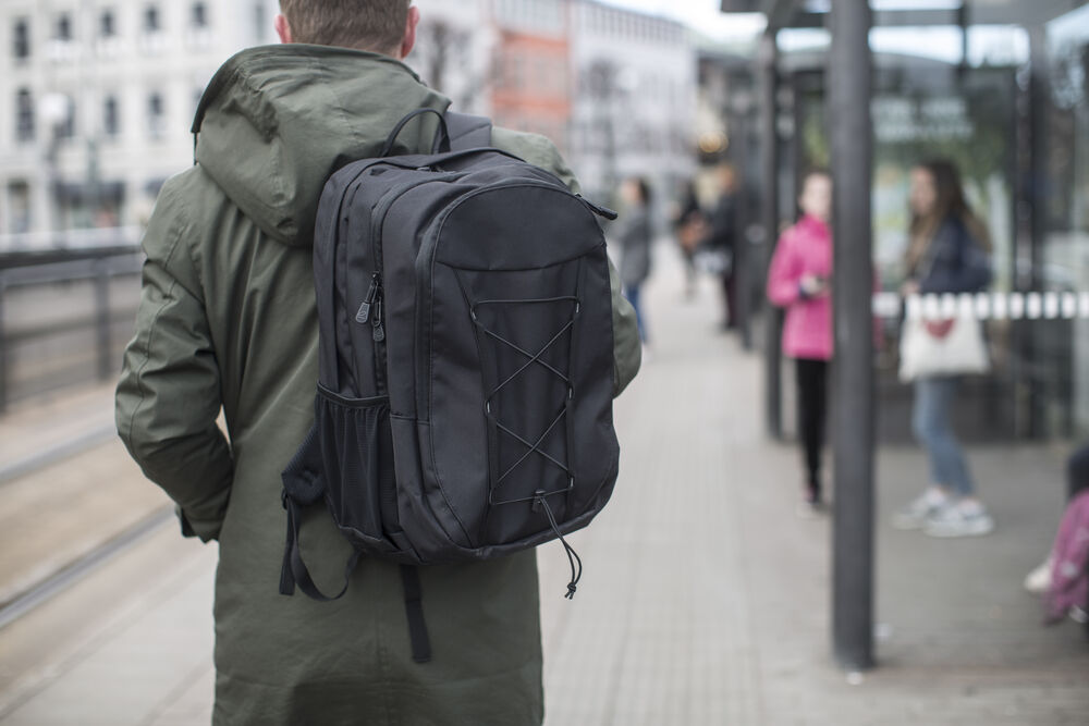 Sporty ryggsekk med vattert lomme til PC. Snor i kontrastfarge