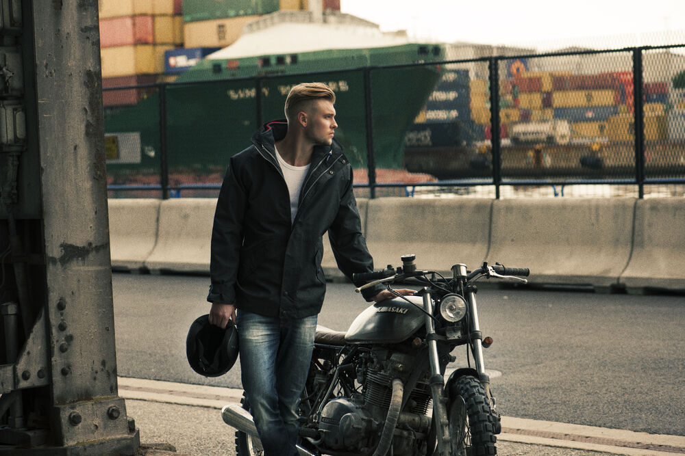 Vind- og vannavstøtende skalljakke med skjult hette i kragen. Jakken kan festes sammen med Squeeze polar.