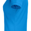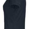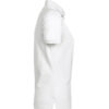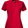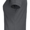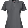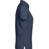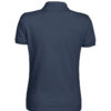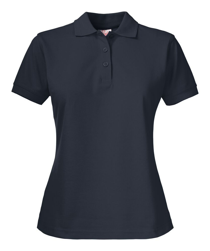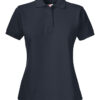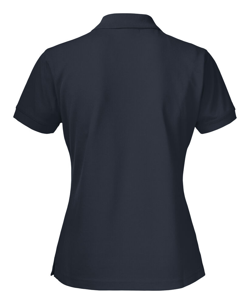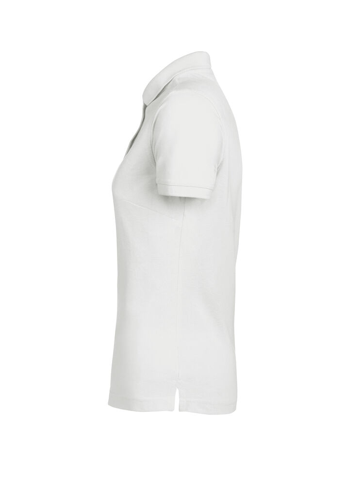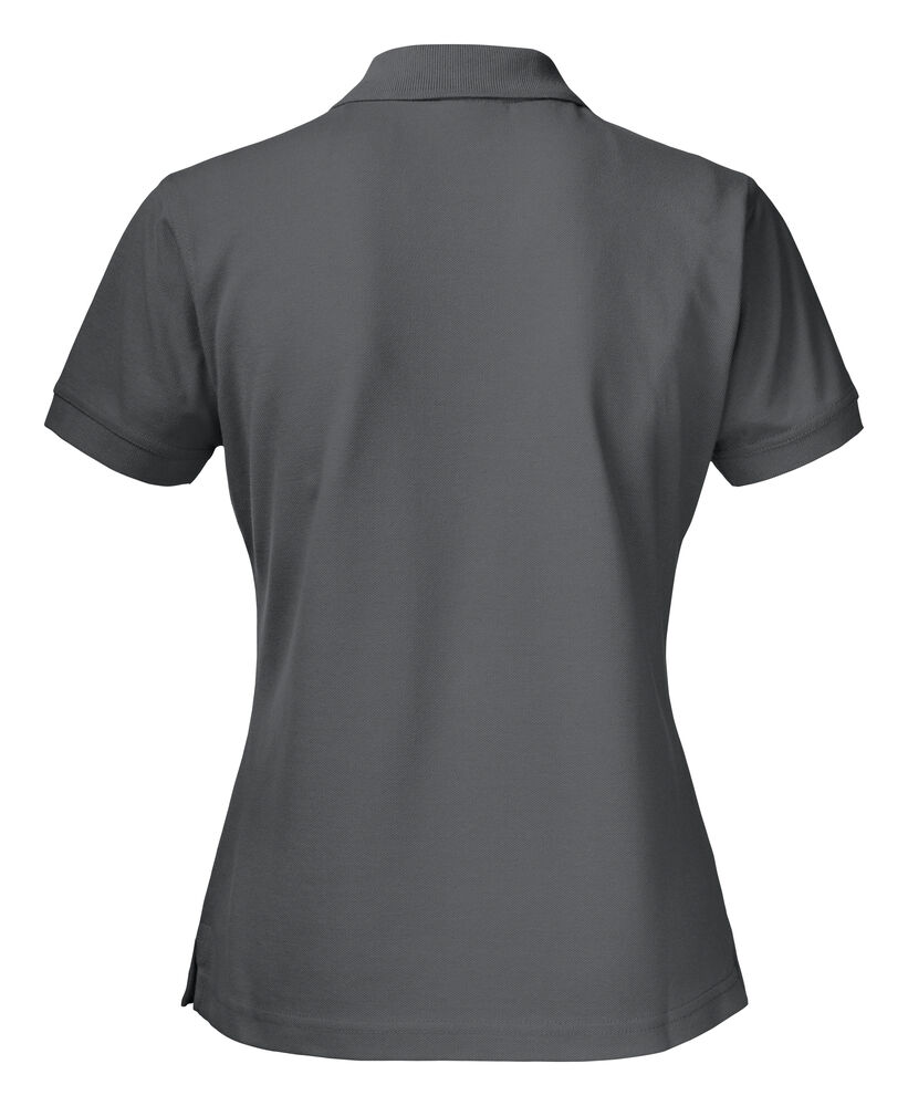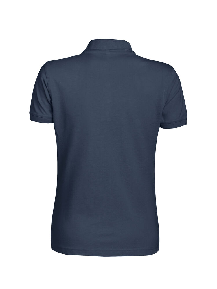 Damepique med tre knapper i stolpe, nakkebånd, splitt i siden, og ribb i ermavslutning.