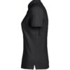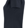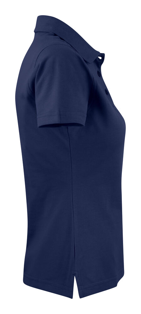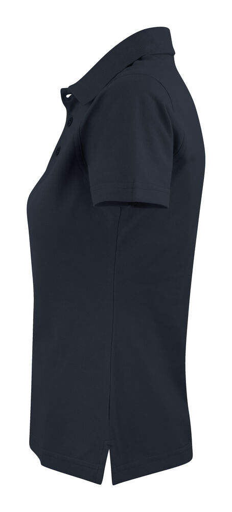 Figursydd damepique med splitt siden. Flatstrikket ribb i krage. Stolpe med tre knapper.