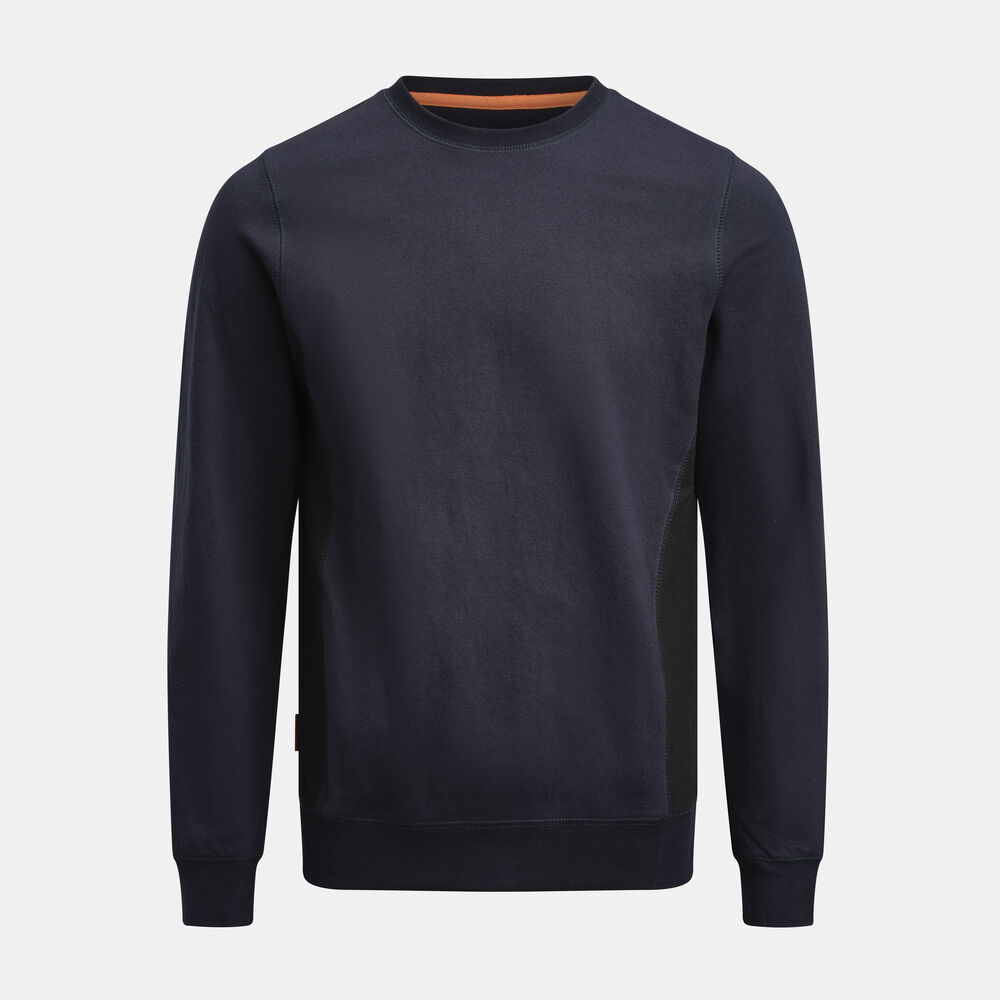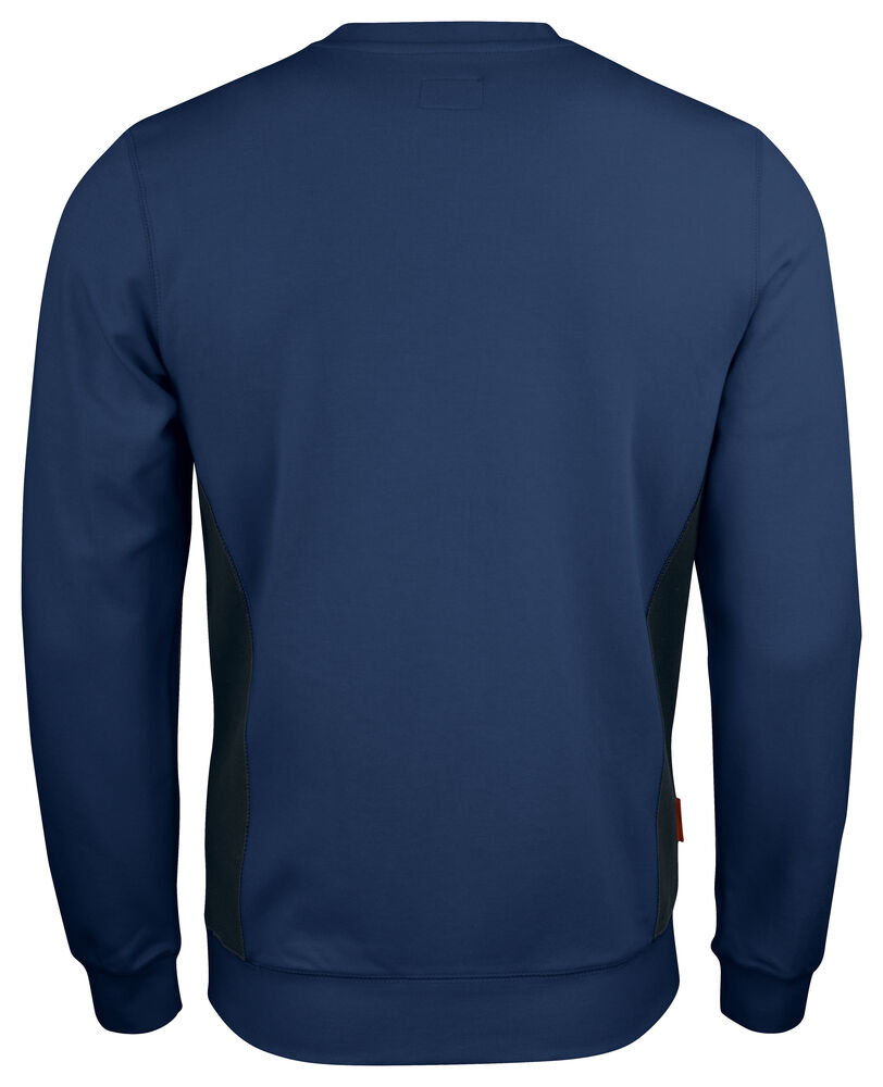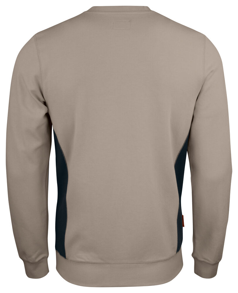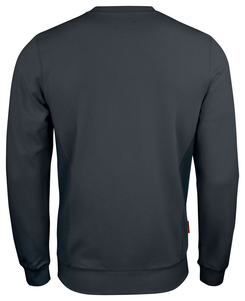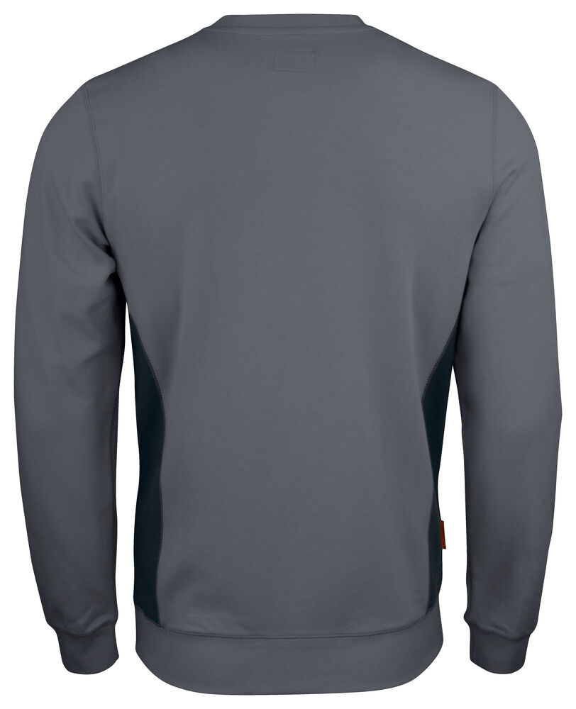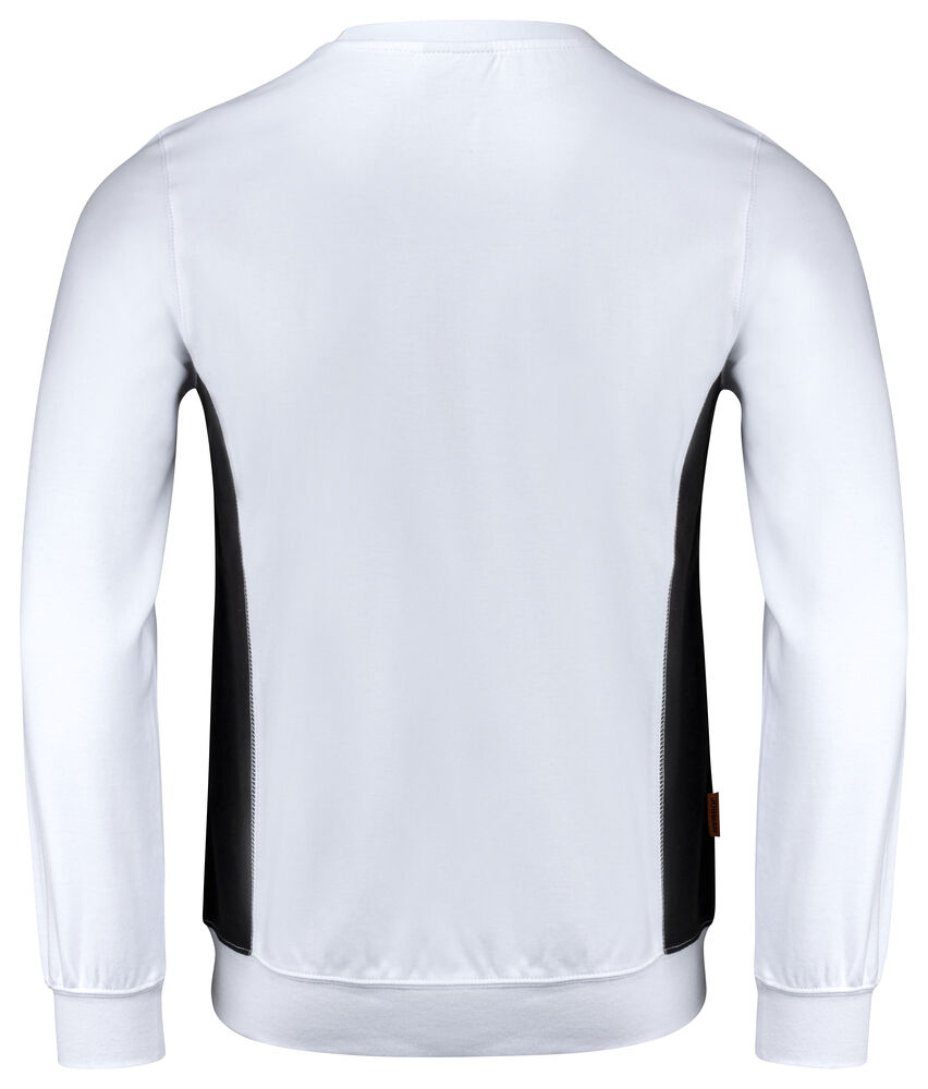 Genser med rund hals i doubleface-materiale. Elastikk nederst på kroppen og på ermene. Kontrastpanel i siden.