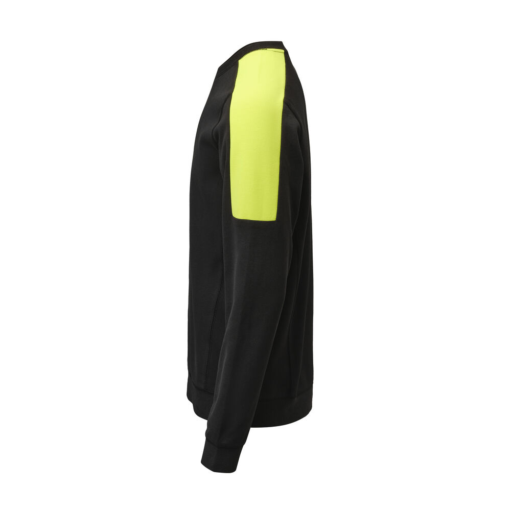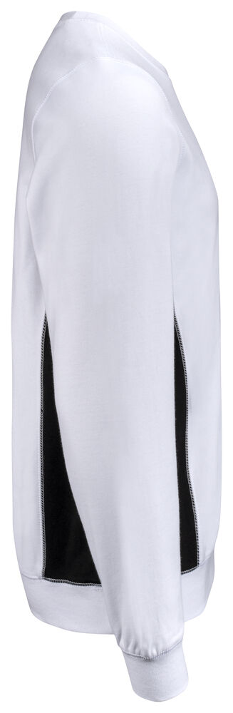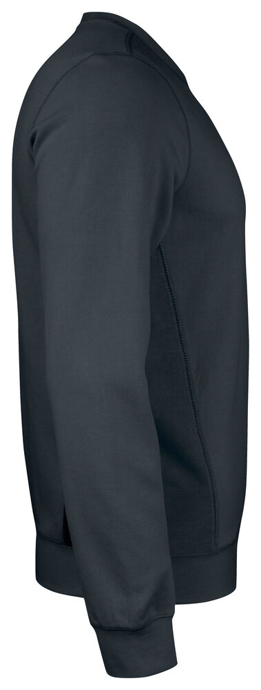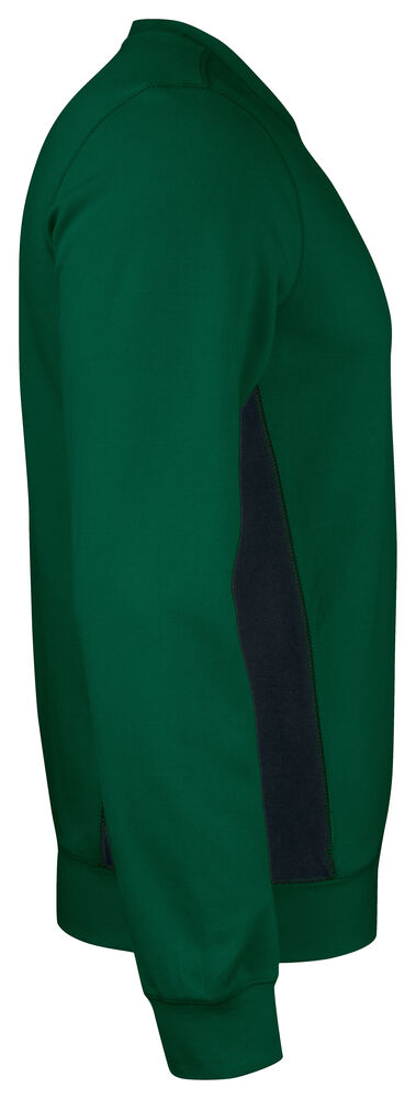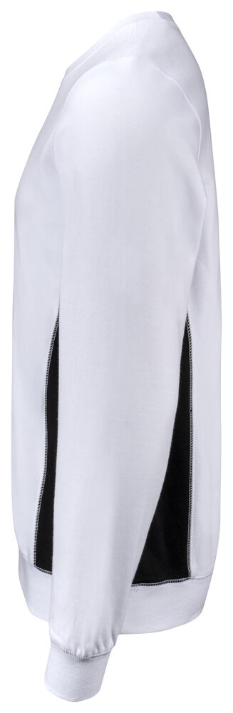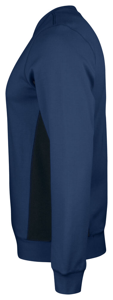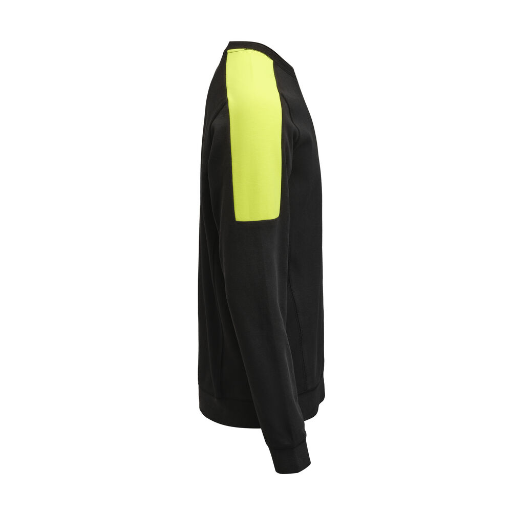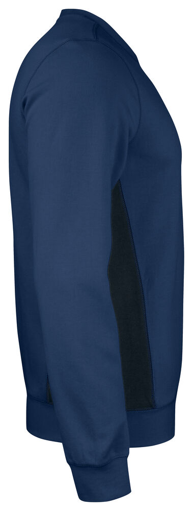 Genser med rund hals i doubleface-materiale. Elastikk nederst på kroppen og på ermene. Kontrastpanel i siden.