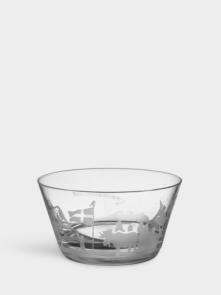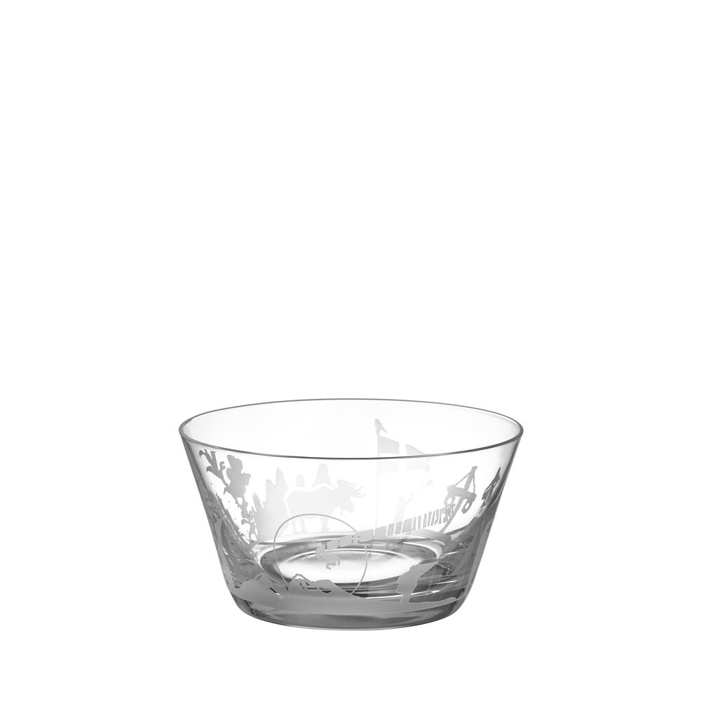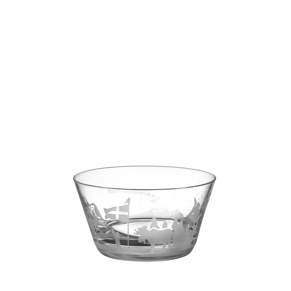 Elger, dalahester, glassblåsing, midtsommer, nordlys … kjente ting og fenomener fra vårt langstrakte land har blitt etset inn på glassflaten som en dekorativ ringdans rundt skålen. Fin størrelse, enkel å pakke og ta med hjem som et minne fra besøket i Sverige og omvendt – den perfekte, typisk svenske gaven til utenlandske besøkende og venner.
