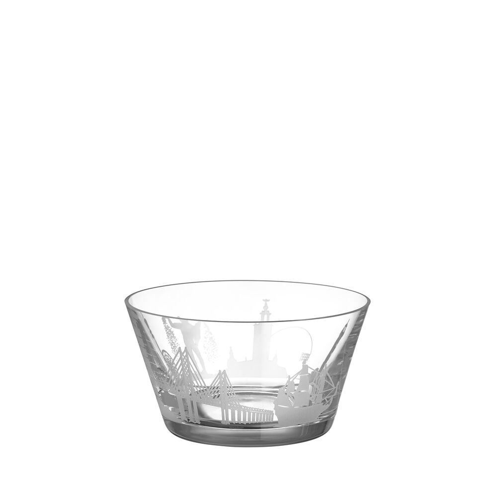 Stockholm, Gøteborg, Malmø….siluetten av berømte urbane landemerker dekorerer krystallen i sirkel rundt denne lekre bollen.
