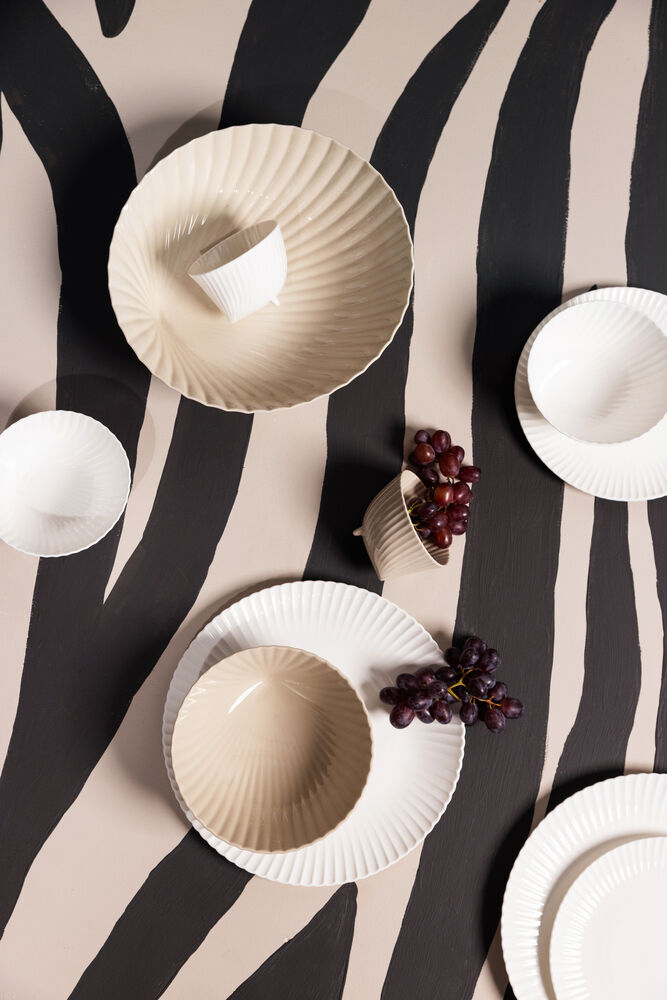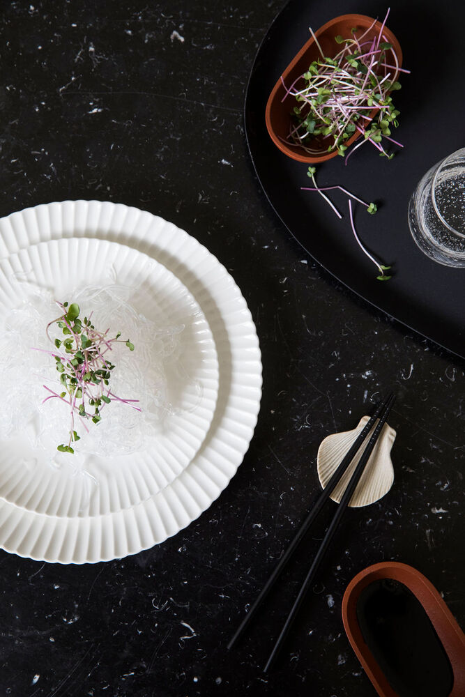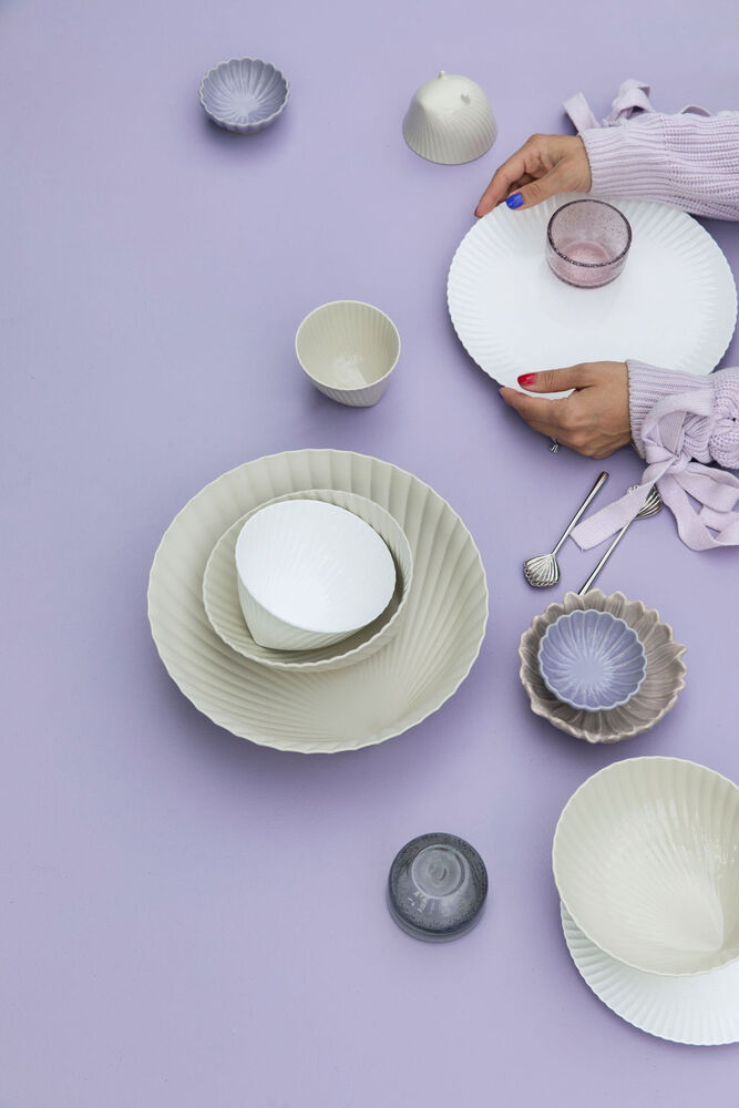 Tallerkenen Frances er en moderne og klassisk porselenstallerken med inspirasjon fra skjellenes vakre former, farger og materialer.