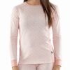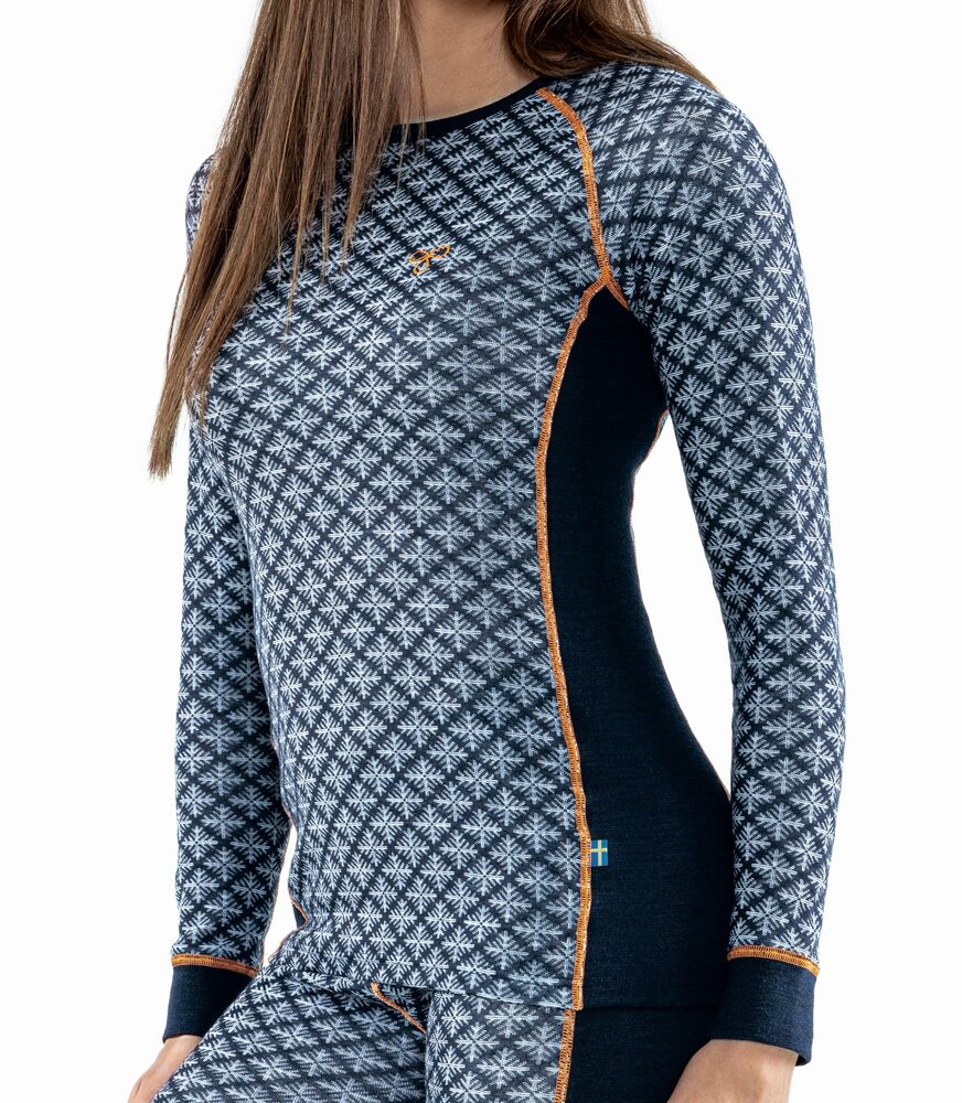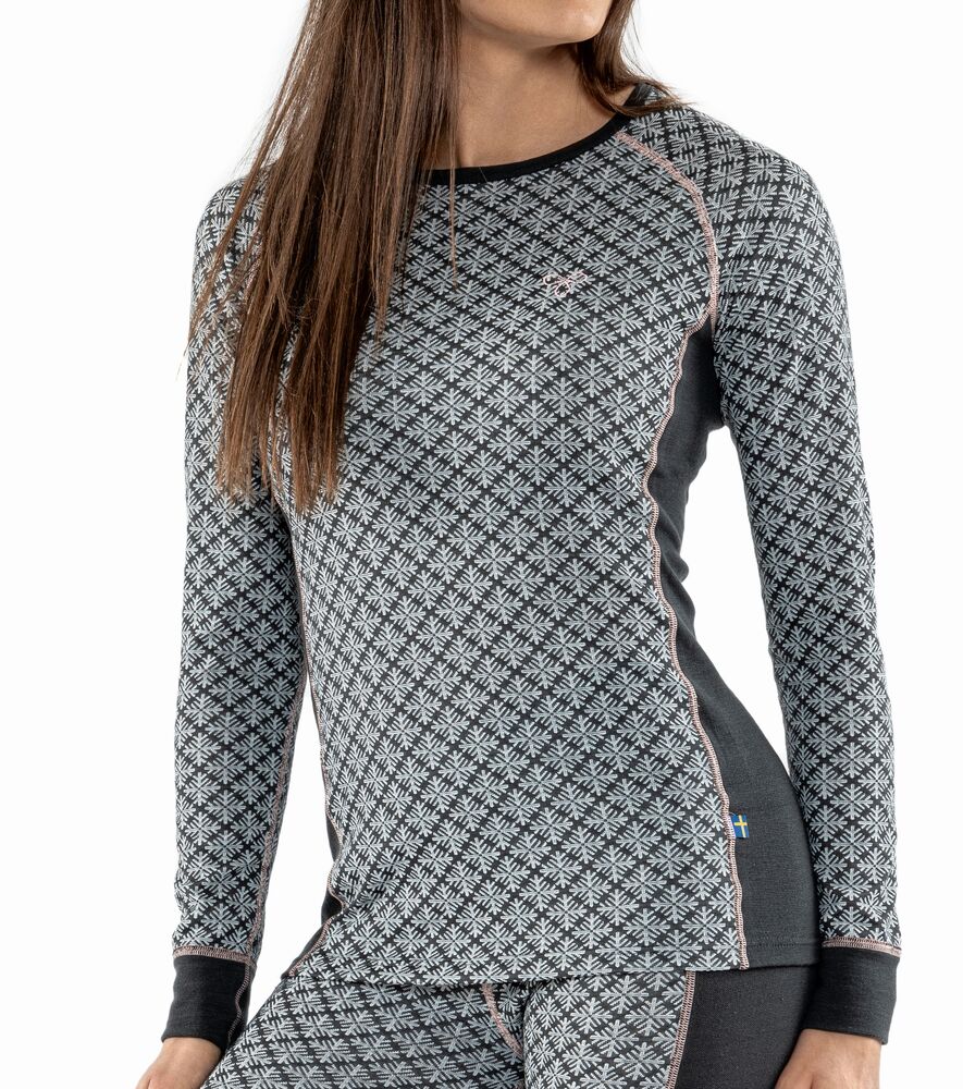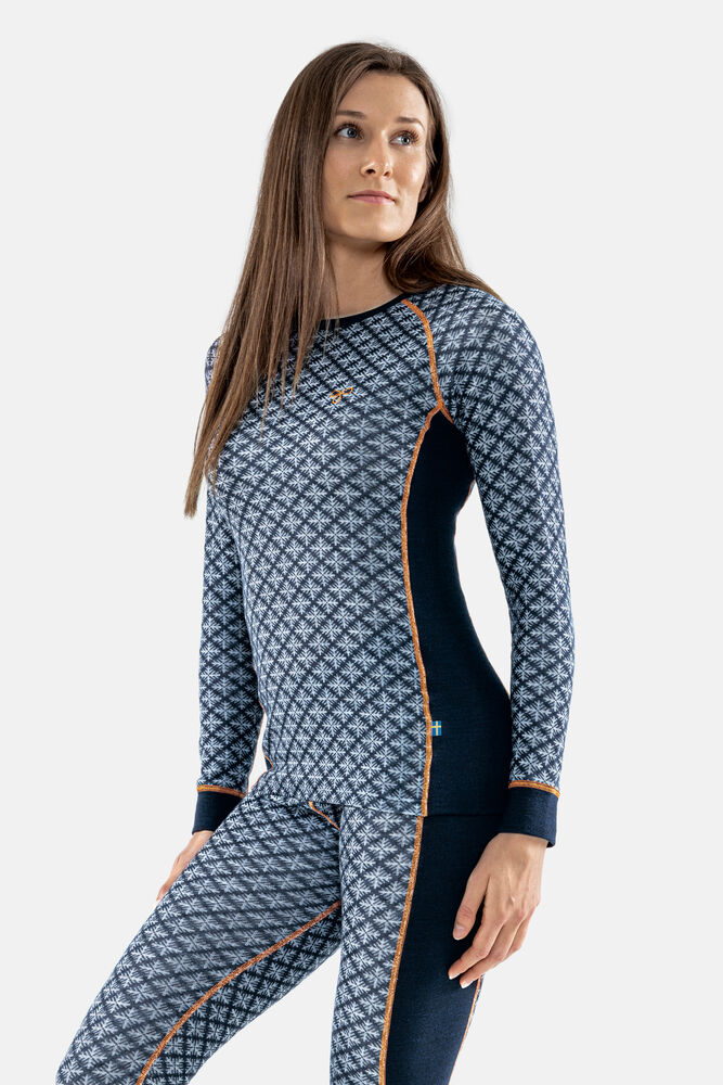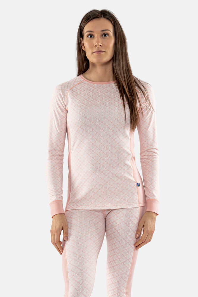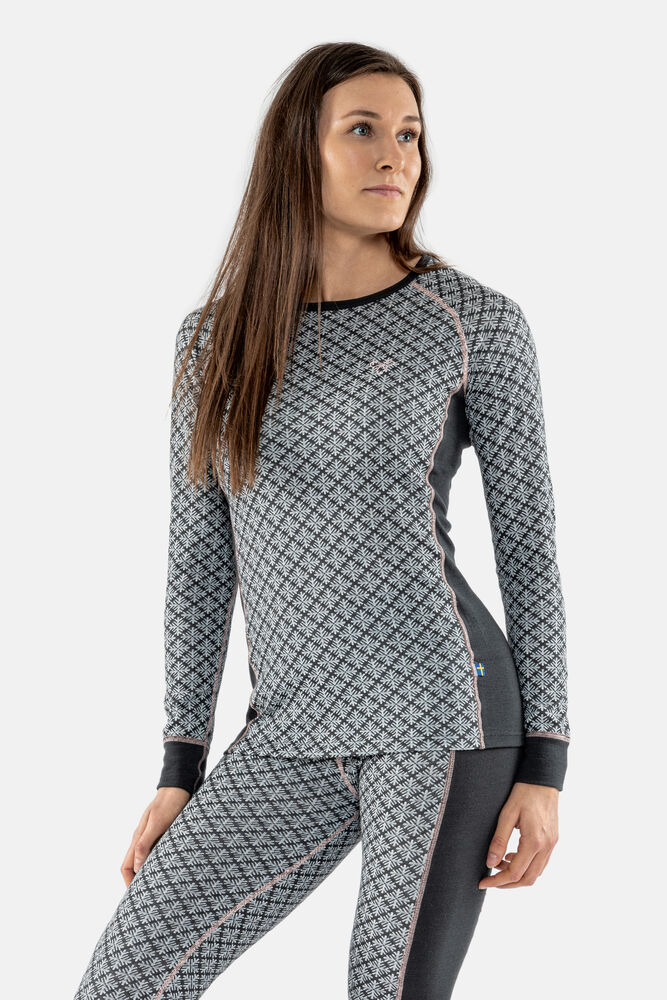 Undertrøye for dame med rund hals. God på fukttransport og er naturlig antibakteriell. Perfekt for deg som bryr deg om miljøet og ønsker å ta bærekraftige valg. Passer utmerket til fysisk aktivitet utendørs, alt fra langrenn med høy intensitet til gåturer.