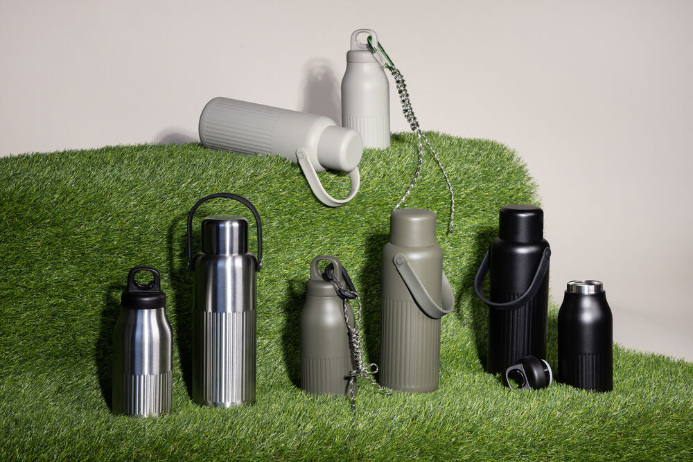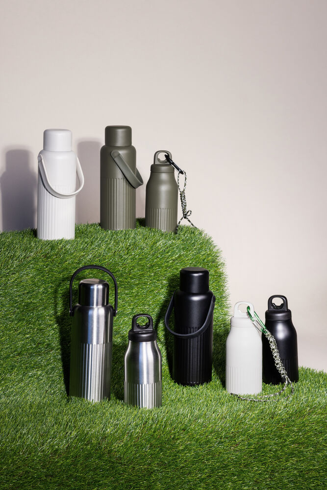 - Resirkulert rustfritt stål med kobberbelegg, dobbeltvegget og med pulverlakkert overflate/resirkulert PP/silikon
