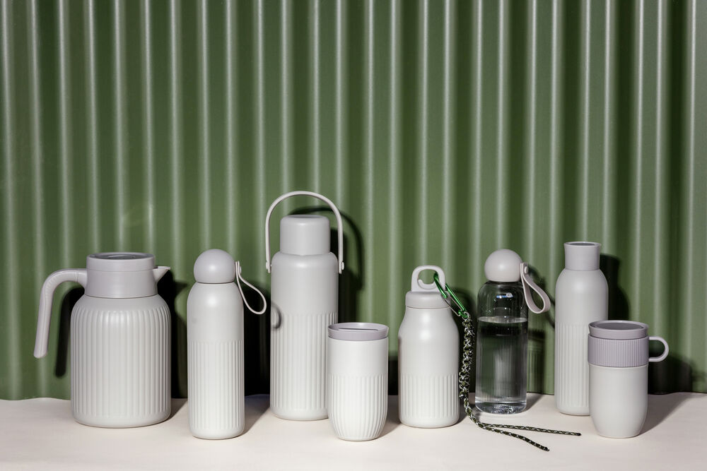 - Resirkulert rustfritt stål med kobberbelegg, dobbeltvegget og med pulverlakkert overflate/resirkulert PP/silikon