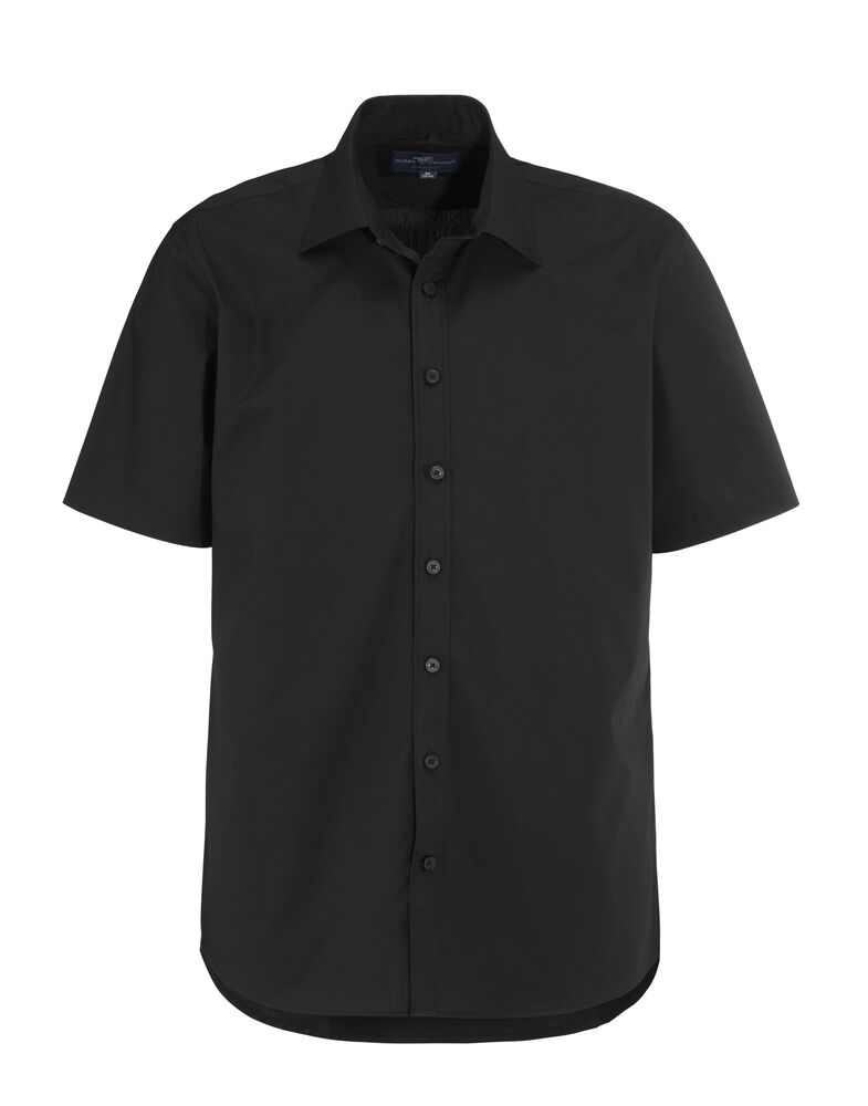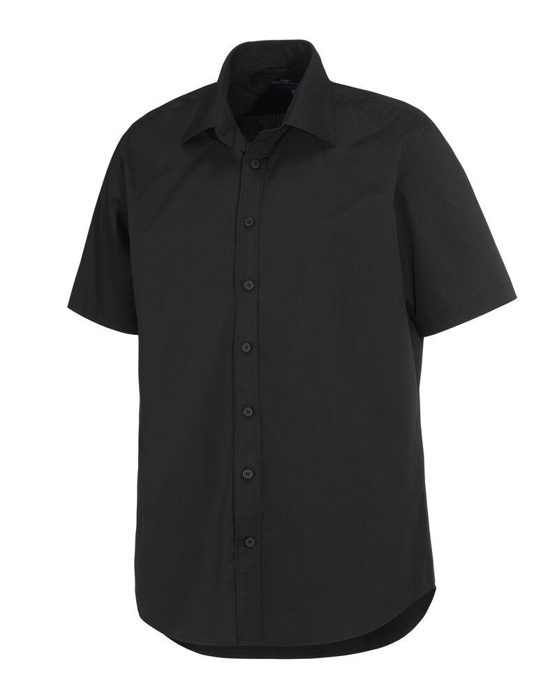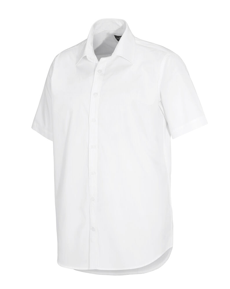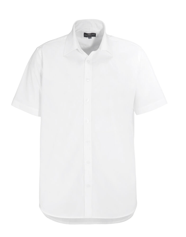 Poplinskjorte med korte ermer, ton-i-ton knapper og turndown krage.