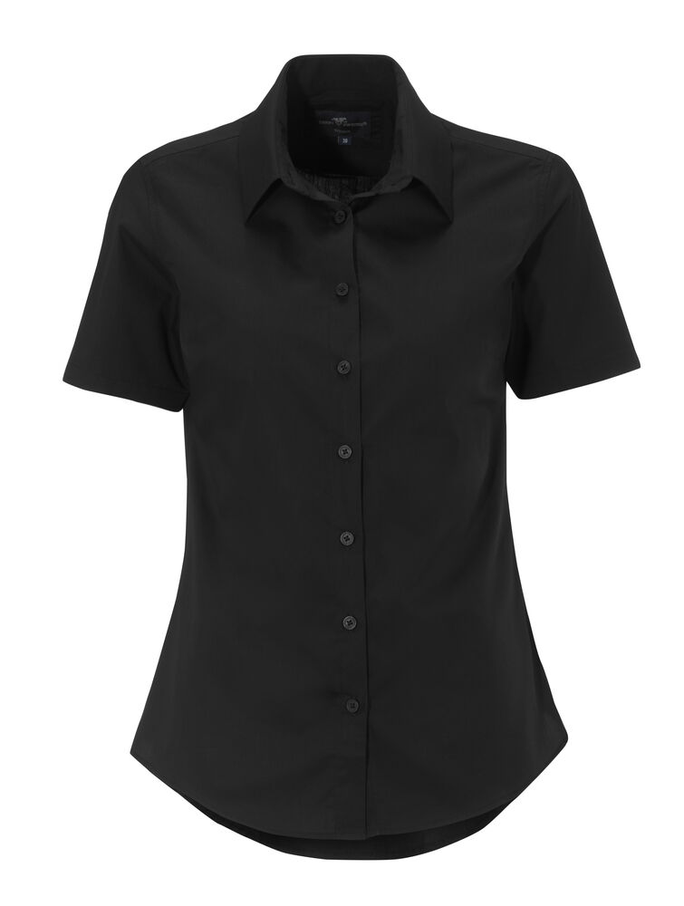 Skjorte i 100% bomull med korte ermer. Ton-i-ton knapper og turndown krage.
