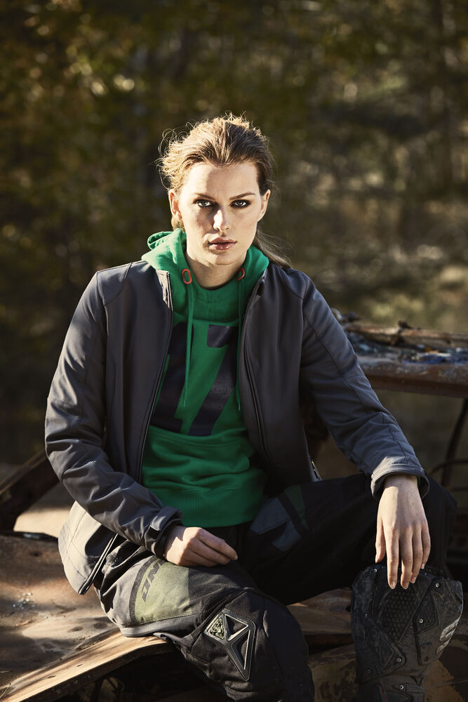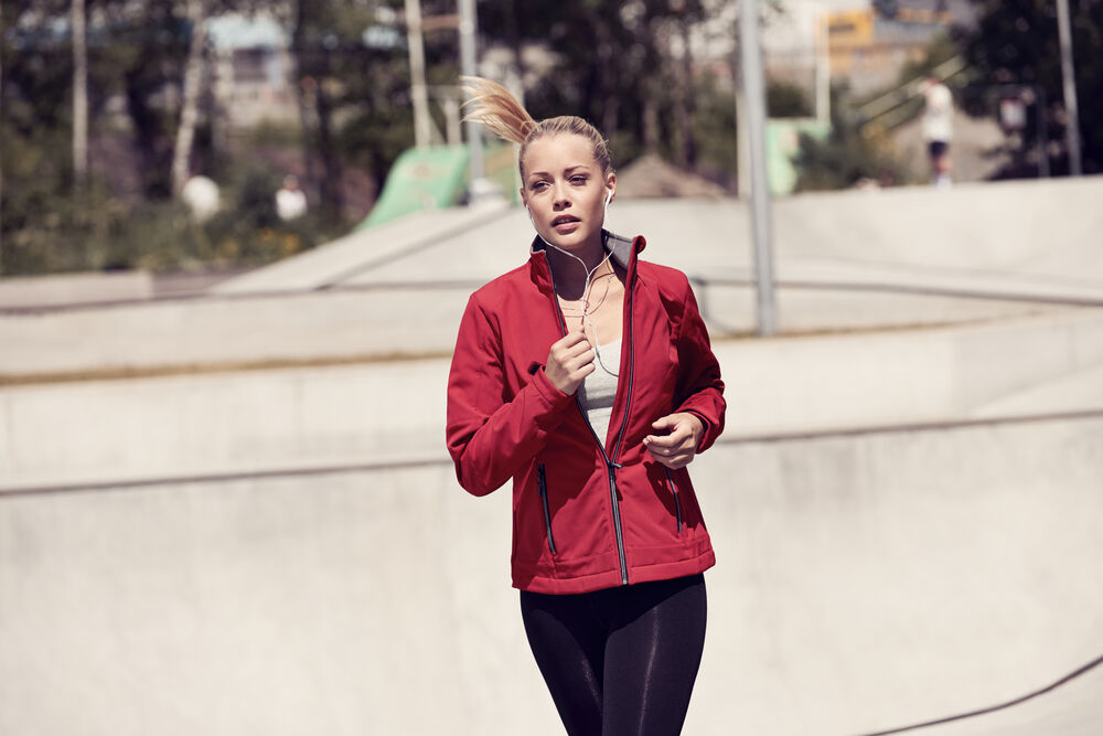 Softshelljakke med stretch. Glidelås i front og på lommer. Justerbar ermavslutning med borrelås og snor i nederkant. Børstet innside. Mulighet for å kjøpe zip-pullers i andre farger.