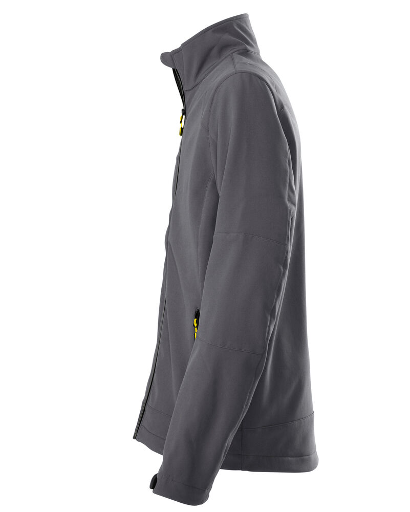Softshelljakke med stretch. Glidelås i front og på lommer. Justerbar ermavslutning med borrelås og snor i nederkant. Børstet innside. Mulighet for å kjøpe zip-pullers i andre farger.