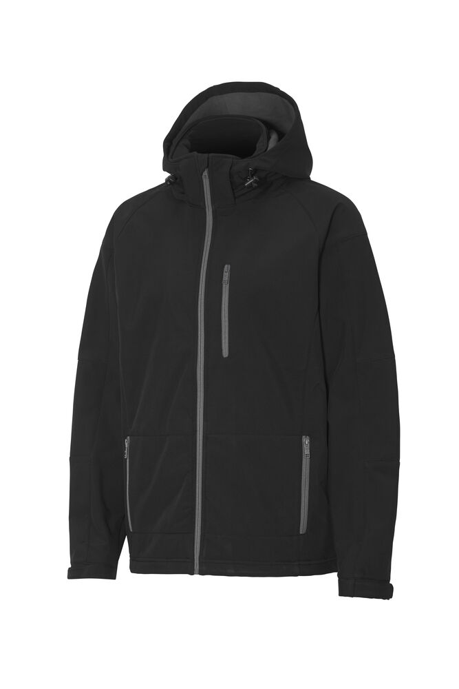 Softshelljakke i sort med grå mikrofleece på innsiden. Vind- og vannavvisende (WP3000/MVP3000). Avtagbar hette og justerbare ermeavslutninger. Elastisk snøring i hette og nederkant. Bryst- og frontlomme, samt innerlomme. YKK-glidelåser. Bionic Finish Eco.