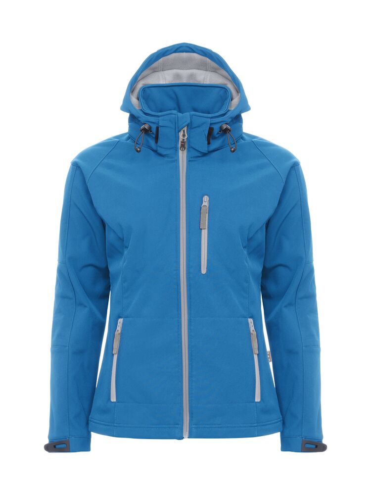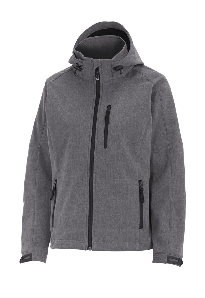 Softshelljakke med kontrastfarget microfleece på innsiden. Vind- og vannavstøtende (WP3000/MVP2000). Avtagbar hette og justerbar ermavslutning. Elastisk snor i hette og i nederkant. Bryst- og frontlomme samt innerlomme med glidelås.