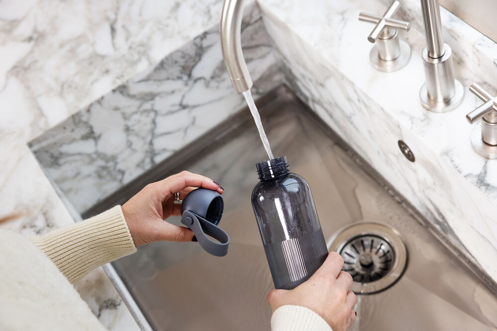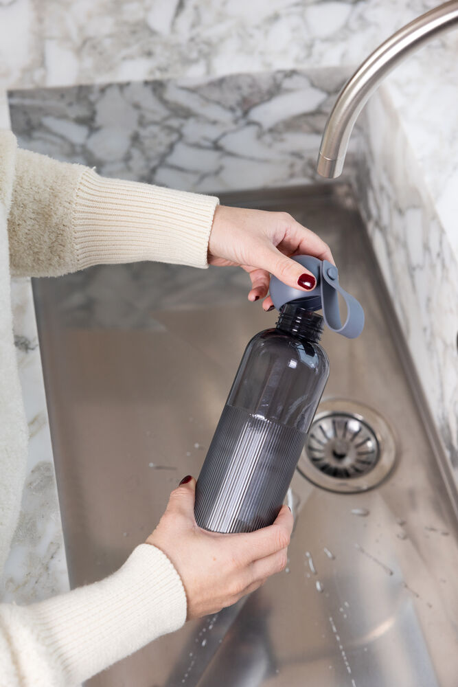 Ture er den perfekte vannflasken når du er på farten – fra stranden, til treningssenteret, i bilen, på kontoret eller på spaserturen. Laget av rPET, resirkulert PET, med lokk i resirkulert PP. BPA-fri. Lokkets avrundede design og de diskrete stripene på flaskens kropp gir en moderne og funksjonell stil. En praktisk TPR-løkke (termoplastisk gummi) gjør den enkel å bære og kan tas av ved behov. Flasken er tilgjengelig i flere naturnære farger, og kompletterer Tova og Ted for et helhetlig sett. Vaskes for hånd. Volum: 60 cl. Design Studio Sagaform.
