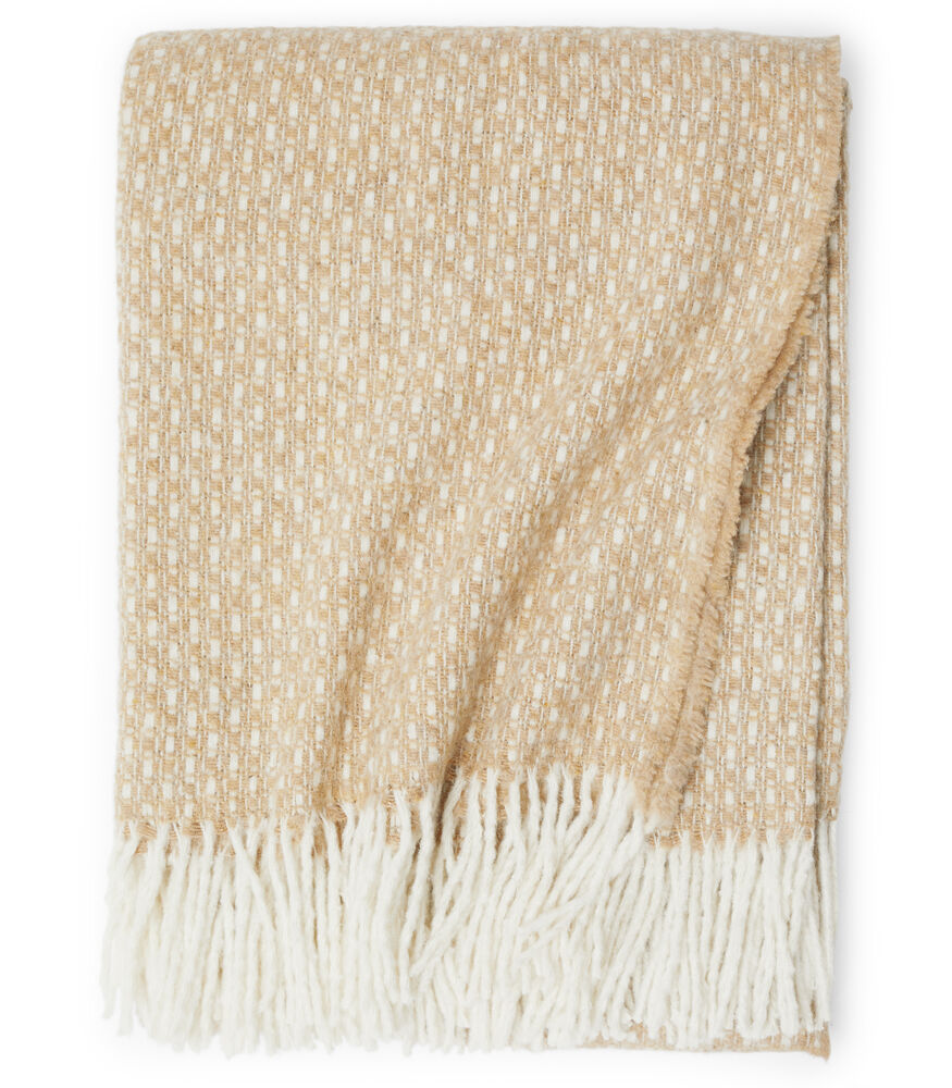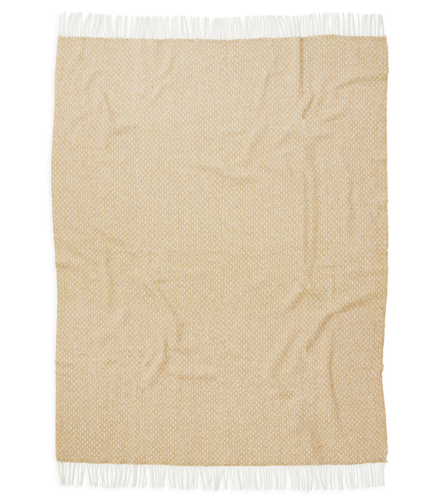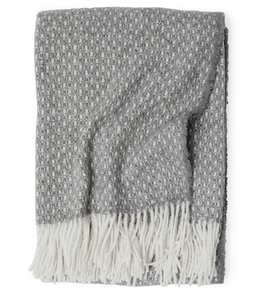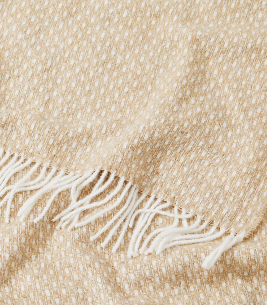 Mykt og behagelig teppe med frynser vevd i en varmende ullblanding. Tidløst og elegant design som enkelt gir liv til en sofa eller seng.