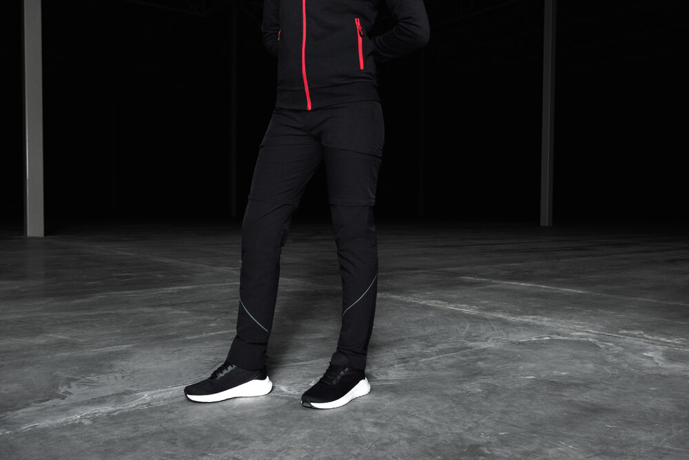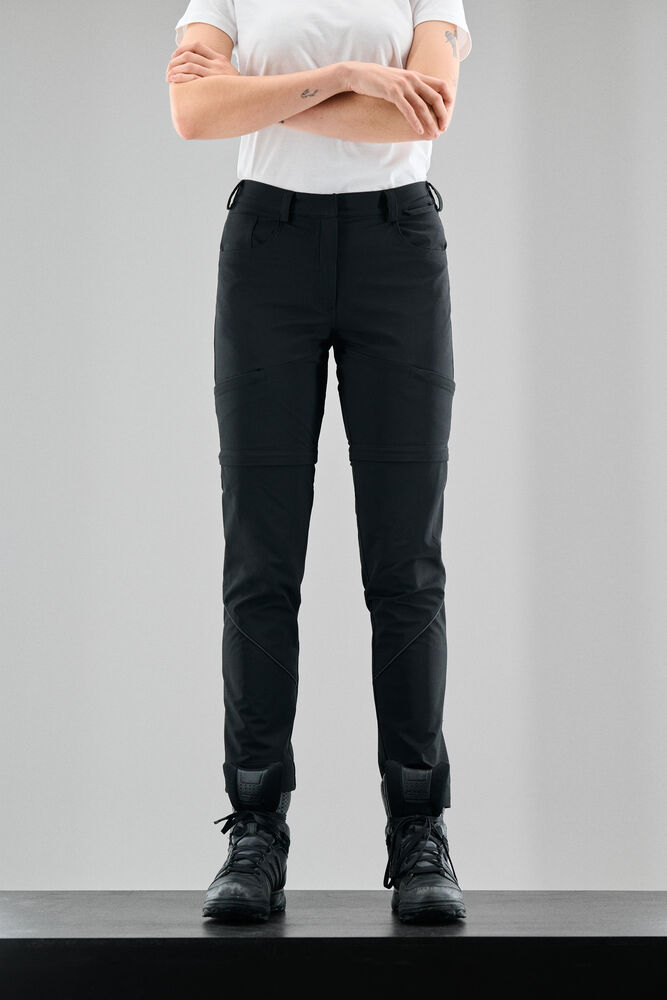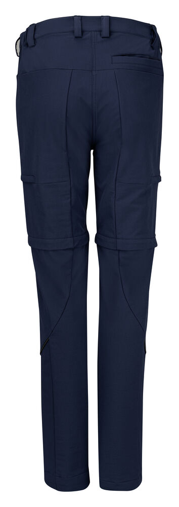 Arbeiderbukse med et sporty, moderne utseende. Buksen har glidelås rundt lårene, slik at den kan gjøres om til shorts. Buksen er svært komfortabel på grunn av stretchkvaliteten og den elastiske linningen. To jeanslommer i front. Venstre frontlomme har en separat plass for telefonen. To lårlommer med glidelås, og en baklomme. Hengeløkke i linningen. Dobbel kant som gjør det mulig å forlenge buksene med 5 cm. I den indre venstre sidesømmen er det anordnet en lomme for å sy i en vaskebrikke. Leveres i en biobasert, komposterbar pose.