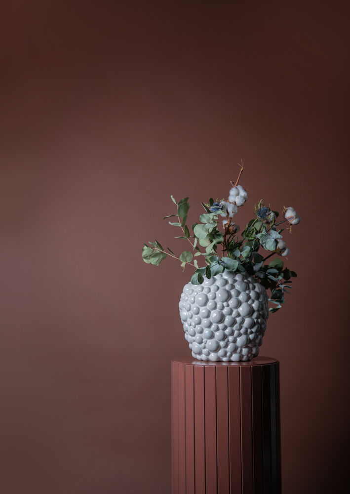 Vi simpelthen elsker bobler! Serien Celeste består av potter i forskjellige farger og fasonger. Den ujevne overflaten og det boblete designet gjør at denne vasen lever sitt eget liv.