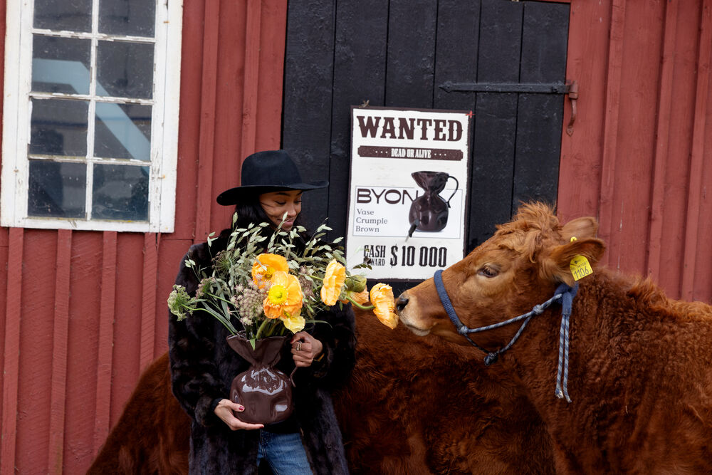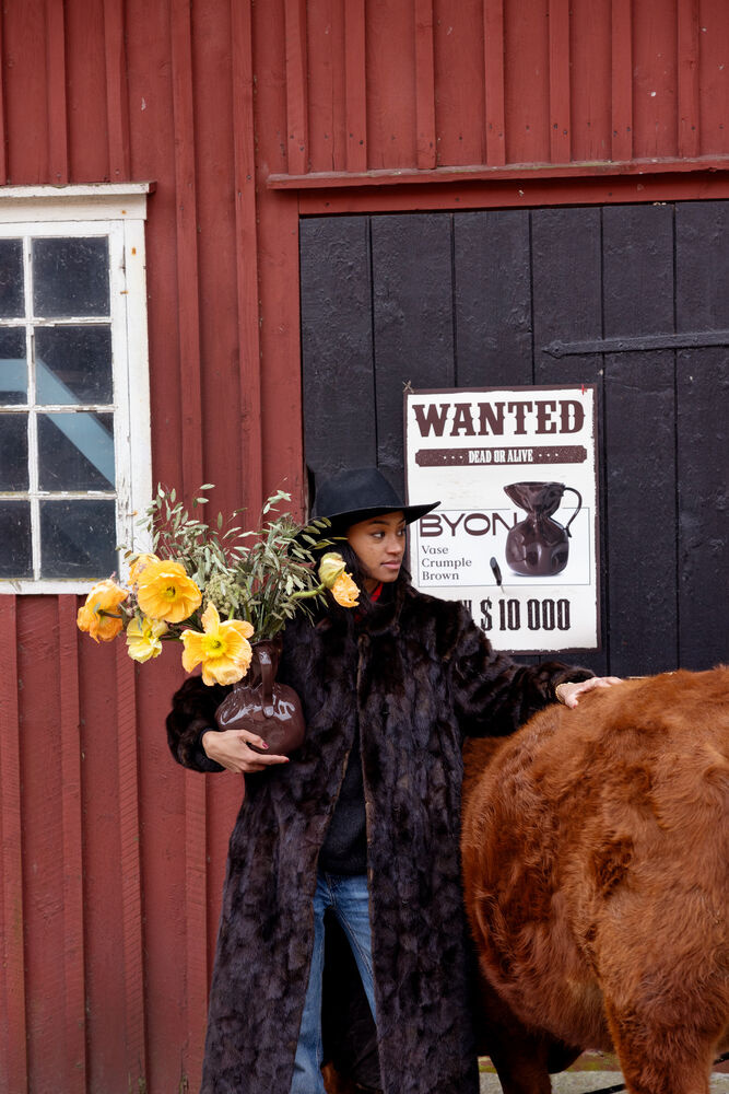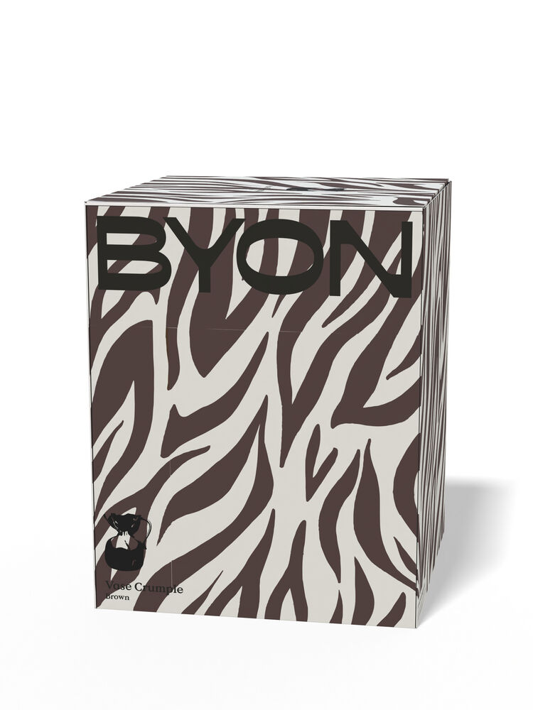 Vasen Crumple er et ekte must-have i Byons kolleksjon, og får oss til å tenke på en sammenkrøllet pose med et snev av vakker origami. Her i en luksuriøs og tøff brunfarge som minner om den fineste mørke sjokoladen. Et kunstverk som fanger blikket – med eller uten blomster. Håndlaget – farge- og strukturforskjeller kan forekomme. Finnes i flere farger. Designet av Byon Studio. Leveres i Byon-eske.