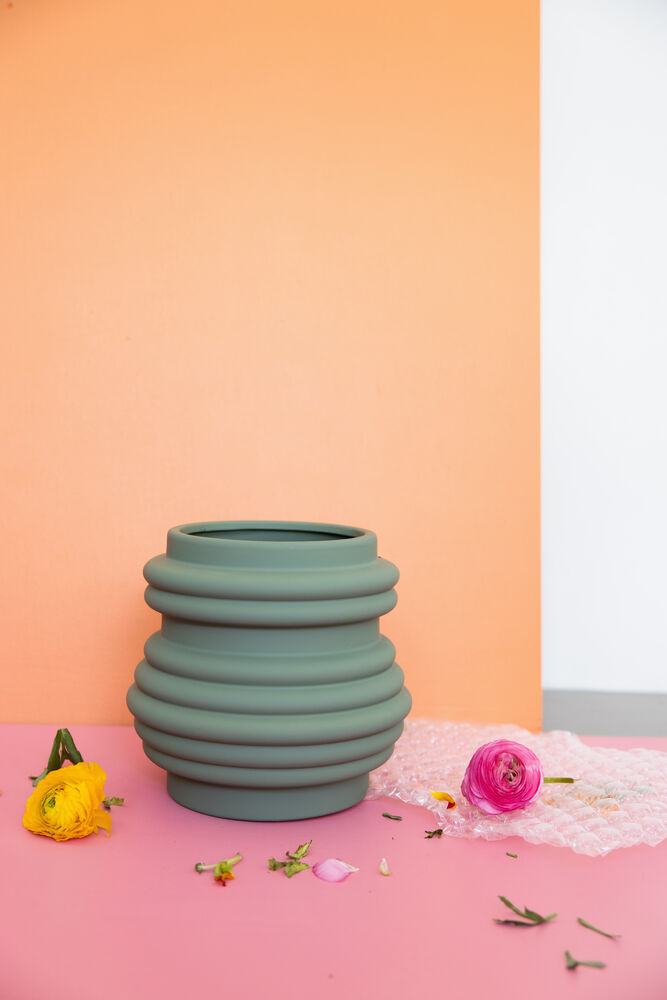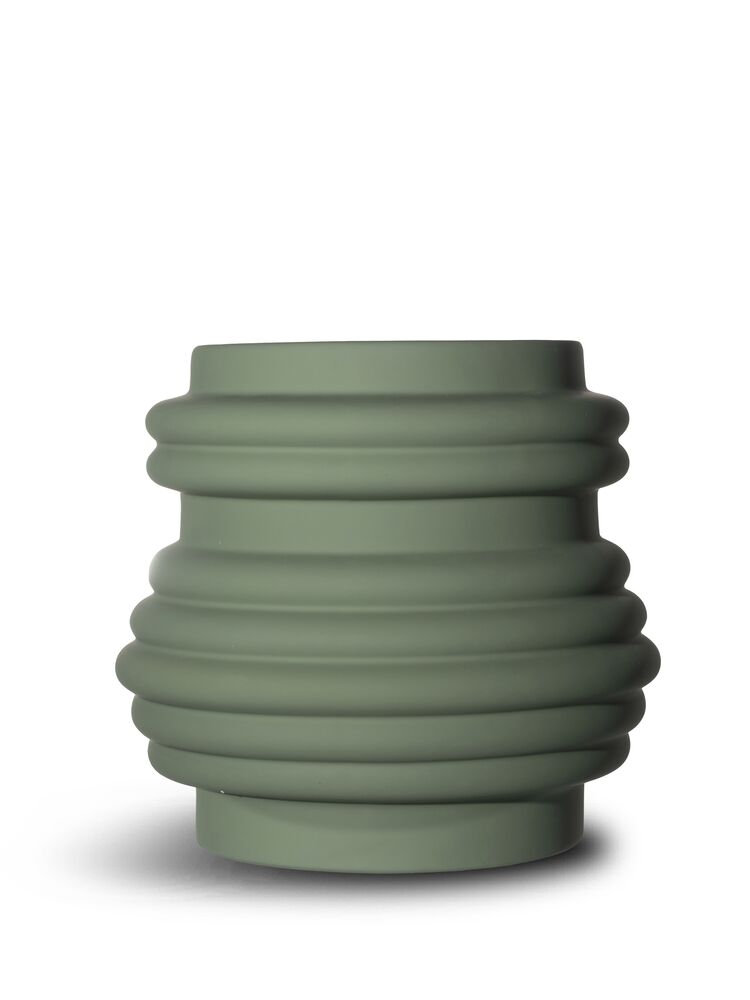 Vase med fin struktur og en matt finish i en lekker grønnfarge. Laget av stengods.