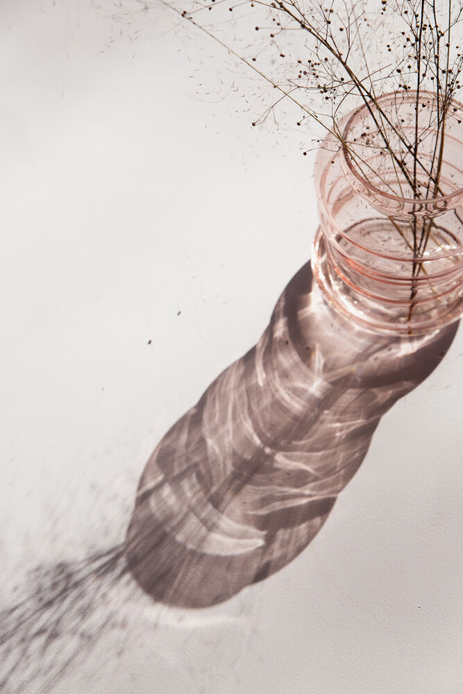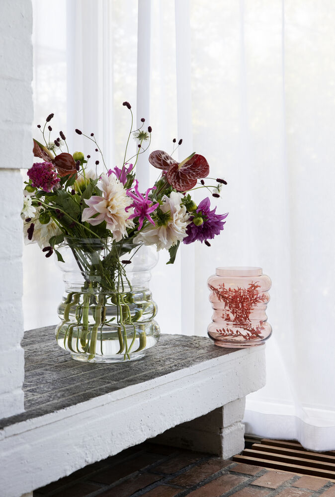 En vase med myke former i dus rød.