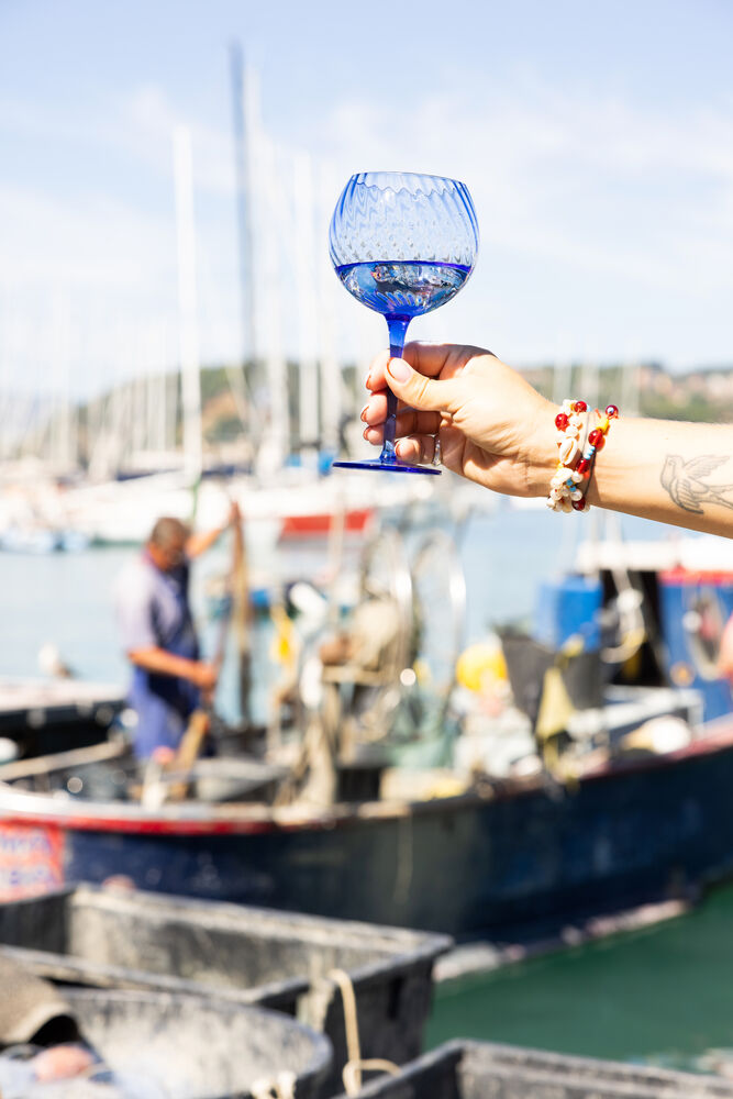 Opacity-vinglasset er laget for å gi deg den perfekte opplevelsen – på bordet, i hånden og når du drikker. Dette delikate og tynne vinglasset tilbyr den ideelle kontrasten mellom luksus og dristighet, med et vakkert stripete mønster i farget glass for en leken effekt. Den kjølige og skarpe blå fargen gir magi til enhver drink du liker. I Opacity blue-familien finner du også champagnekupeer og runde vannglass. Munnblåst glass. Designet av Byon Studio. Leveres i Byon-boks.