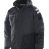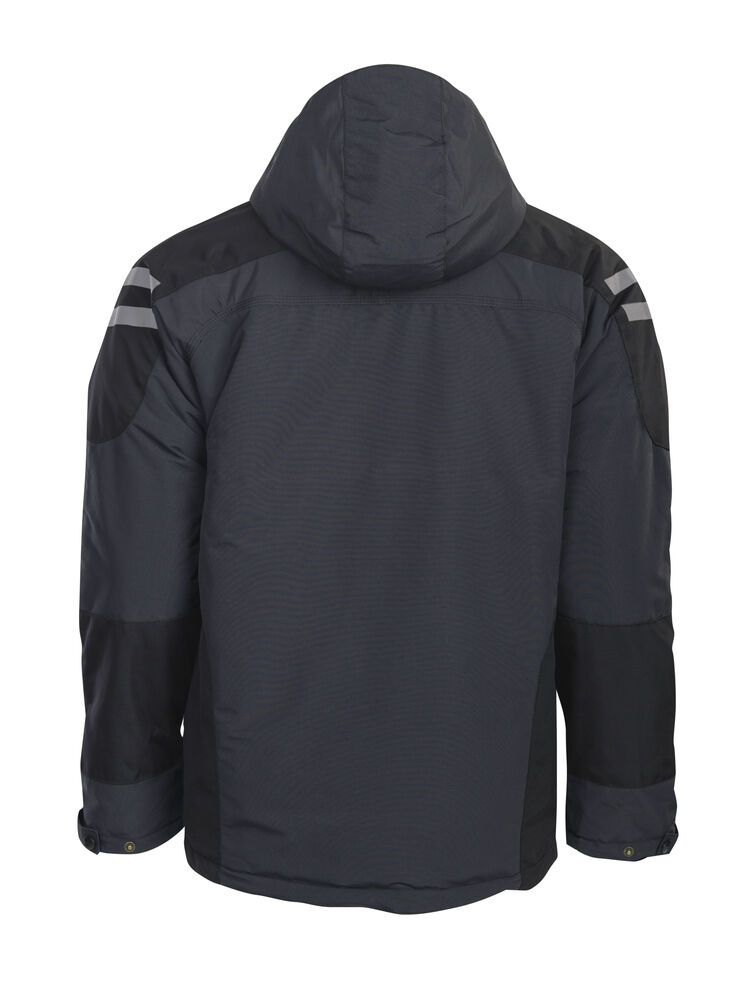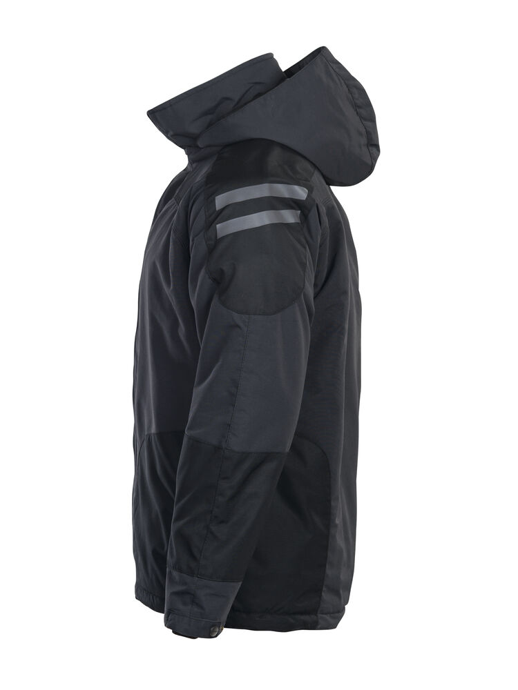 En litt lengre jakke med hette som kan tas av. Teddyfôr kombinert med quiltfôr for varme og bevegelsesfrihet. Forsterkede partier på undersiden av ermene og på skuldrene. Mørke reflekser på skuldrene som er synlige ved behov. Frontlommer med glidelås og brystlomme med innfelt ID-kortholder. Doble innerlommer.