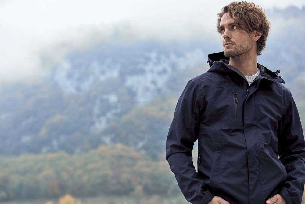 Moderne skalljakke med funksjon og ekstra detaljer. SBS vanntett glidelås på bryst og i sidelommer. Innerlomme med glidelås, spesielt laget for enkel tilgang til å trykke eller brodere plagget. Tapede sømmer og glidelås under armen for enkel utlufting. Hette med snøring, justerbare mansjetter og snor i bunnen.