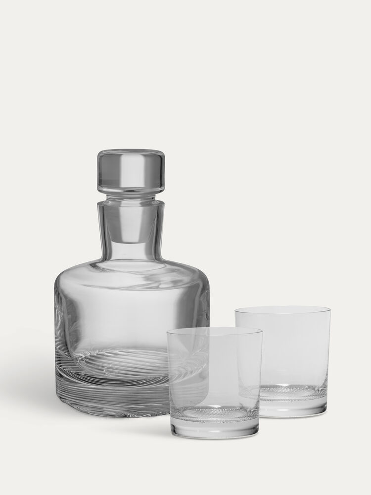 Wave 90 cl dekanter fra Kosta Boda har et rent, moderne design med et stilrent skandinavisk preg. Det dekorative bølgemønsteret langs dekanterens bunn gir den en karakter som passer godt til alle typer glass – men fremfor alt er den et perfekt supplement til Kosta Bodas Limelight-serie. I gaveesken kompletteres Wave med to 22 cl tumblerglass fra Limelight-serien av Göran Wärff.