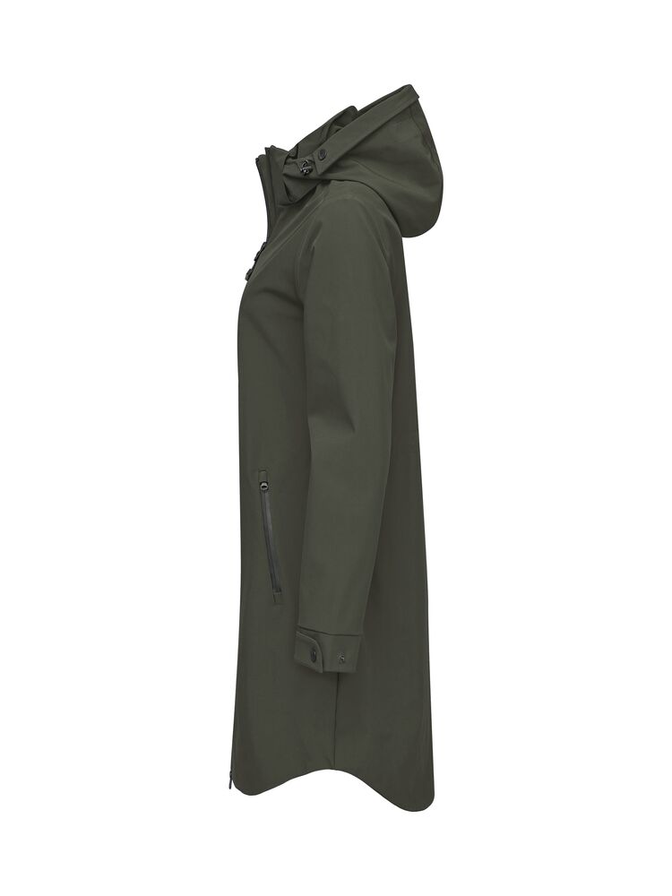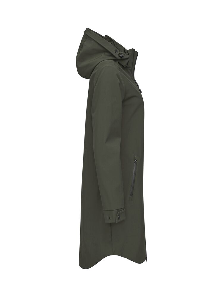 Designet i WeatherTec™-materiale av høy kvalitet, vevd av resirkulert polyester blandet med spandex, noe som gir utmerket beskyttelse i all slags vær. Sømmer i skulderpartiet og ermene er forseglet med vanntett teip, jakken er vind- og vanntett, men har samtidig god pusteevne. Jakken er derfor aldri for varm og tett, men er det perfekte topplaget for ulike typer utendørsaktiviteter. Samtidig er designet minimalistisk for å passe inn i et urbant miljø. Utstyrt med vanntette glidelåser og en innerlomme for oppbevaring av verdisaker. Hetten er avtagbar med glidelås som går langs kragen. Damejakken har snøring i midjen slik at du kan justere passformen. Perfekt å ha over en av våre fleece eller trøyer på en regnværsdag.