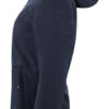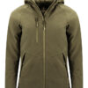 Mellomlang vinterjakke. Skallmateriale med fleece på innsiden. 2-veis vanntett glidelås i front og vanlig vanntett glidelås på brystlommen. Reversert glidelåse av nylon i sidelommene. Vattert fôr med indre brystlomme. Børstet trikot på innsiden av lommene for å varme hendene på kalde vinterdager.