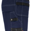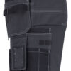 Romslige hengelommer som kan puttes i frontlommene. Romslige frontlommer. Baklommer med forsterket innside. Hammerhank. Ekstra beltehemper på de største størrelsene. Tommestokklomme med knivholder. Benlomme med glidelås, mobiltelefonlomme, ID-kortholder og ekstra rom.