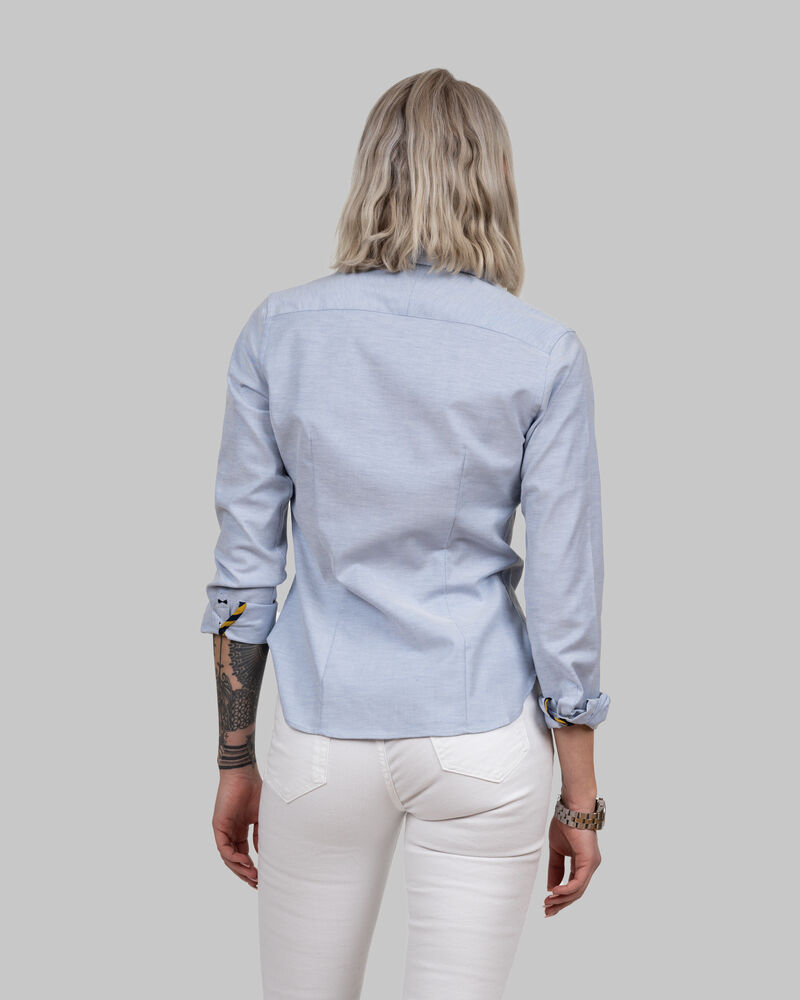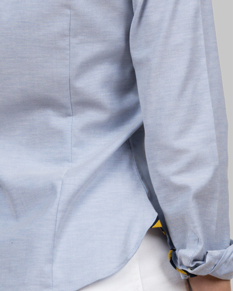 Denne Oxford-skjorten er en ny versjon av vår klassiske Indigo Bow 30. Fritidsskjorten har samme klassiske utseende, men er ny på mange andre måter. Stoffet er en blanding av long staple bomull, tencel (lyocell) og elastan. Dette gir skjorten følgende ytelse: